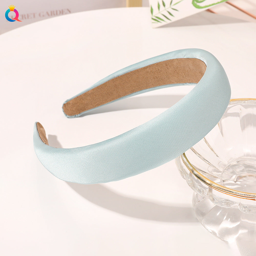 Satin sponge headband - lake blue / Qiyue factory direct sales