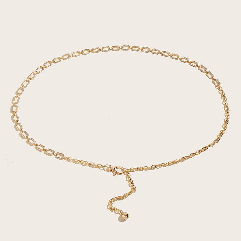 Fashion Rhinestone Inlay Metal Chain Belt for Women