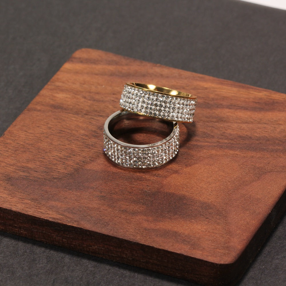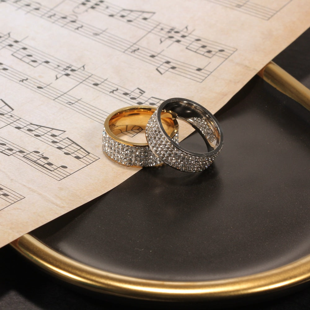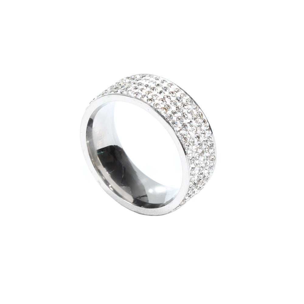 Stainless Steel Five-Row Diamond Ring - 8mm Minimalist Design