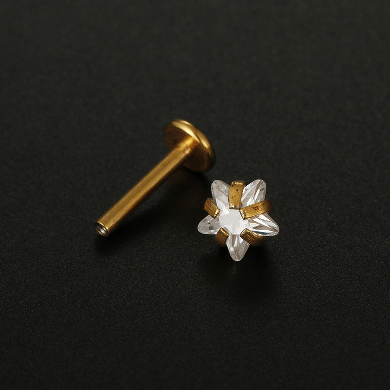 Fashion Star 316L Stainless Steel Zircon Pentagram Lip and Nose Studs Piercing Jewelry