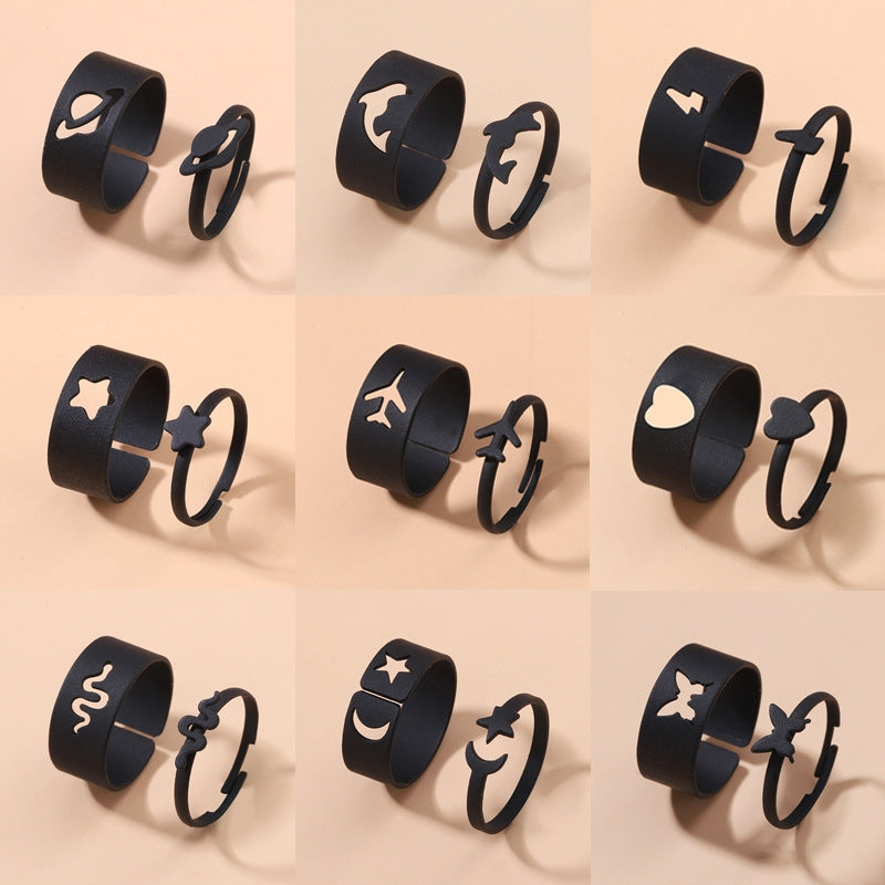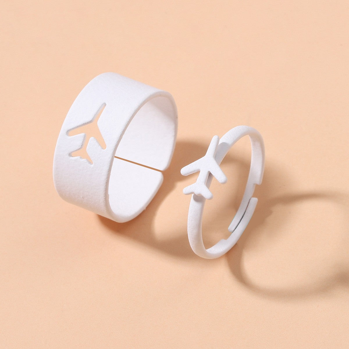 Fashion Star Butterfly Airplane Metal Unisex Open Ring Set - Creative Animal Design Adjustable Rings