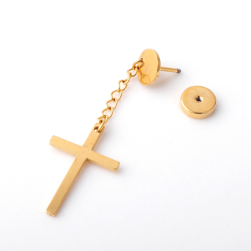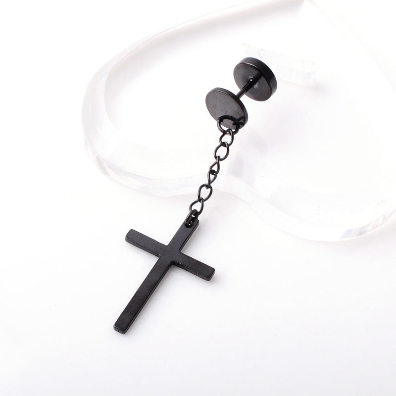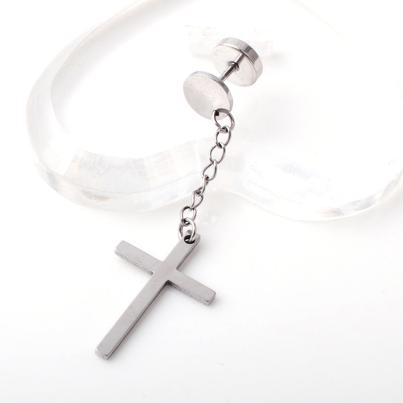 Fashion Star Cross Pendant Dumbbell Titanium Steel Men's Earrings