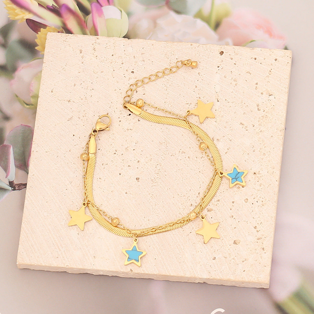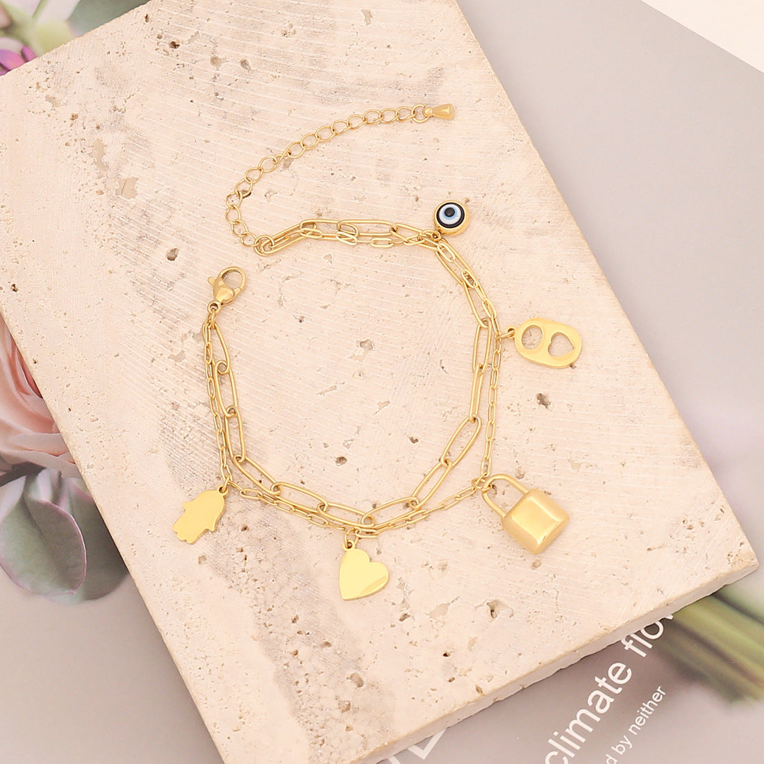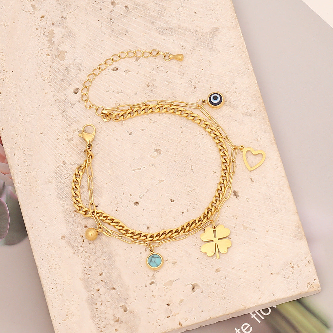 Fashion Star Heart & Eye Turquoise Stainless Steel Bracelet
