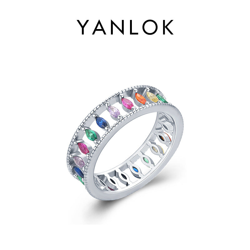 Sterling Silver S925 Rainbow Gemstone Hollow Women's Ring
