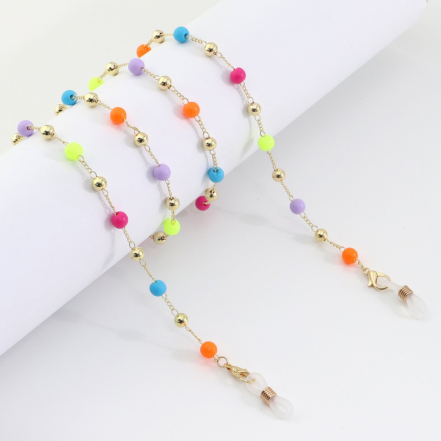 Fashion Multi-purpose Gold Jelly Color Round Beads Glasses Chain