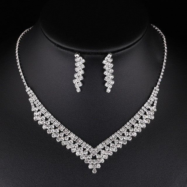 Fashion Tassel Rhinestone Layered Necklace and Earrings Set