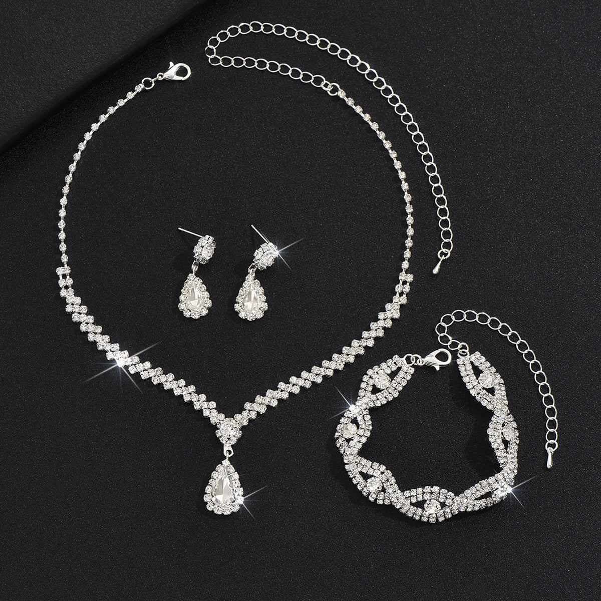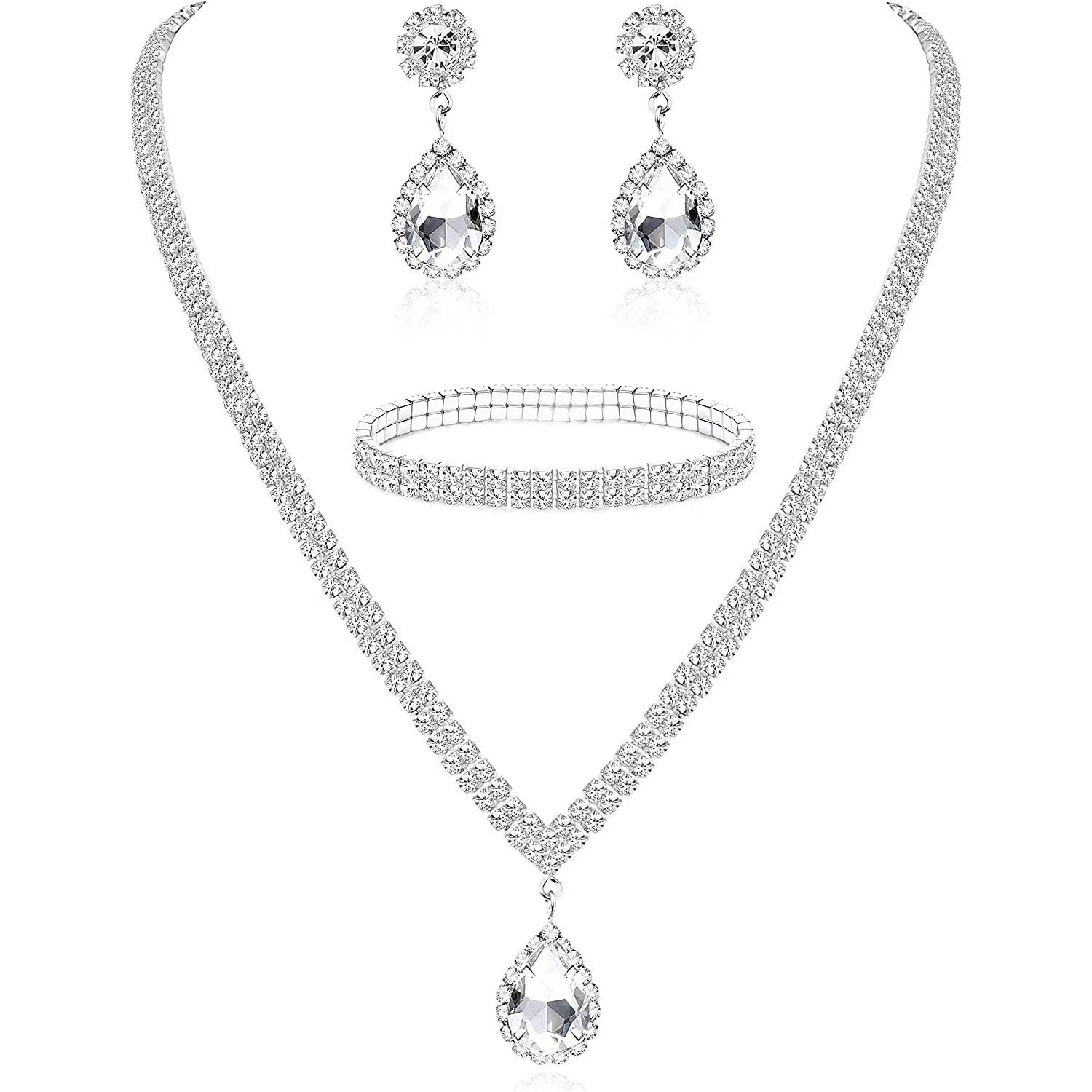 Fashion Rhinestone Jewelry Set: Water Droplets Flower Necklace, Earrings, and Bracelet for Wedding Bridal Accessories