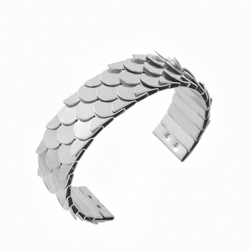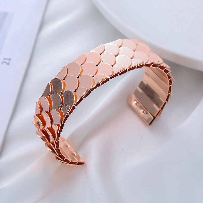 Fashion Waves Metal Plated Fish Scale Open Cuff Bangle for Women