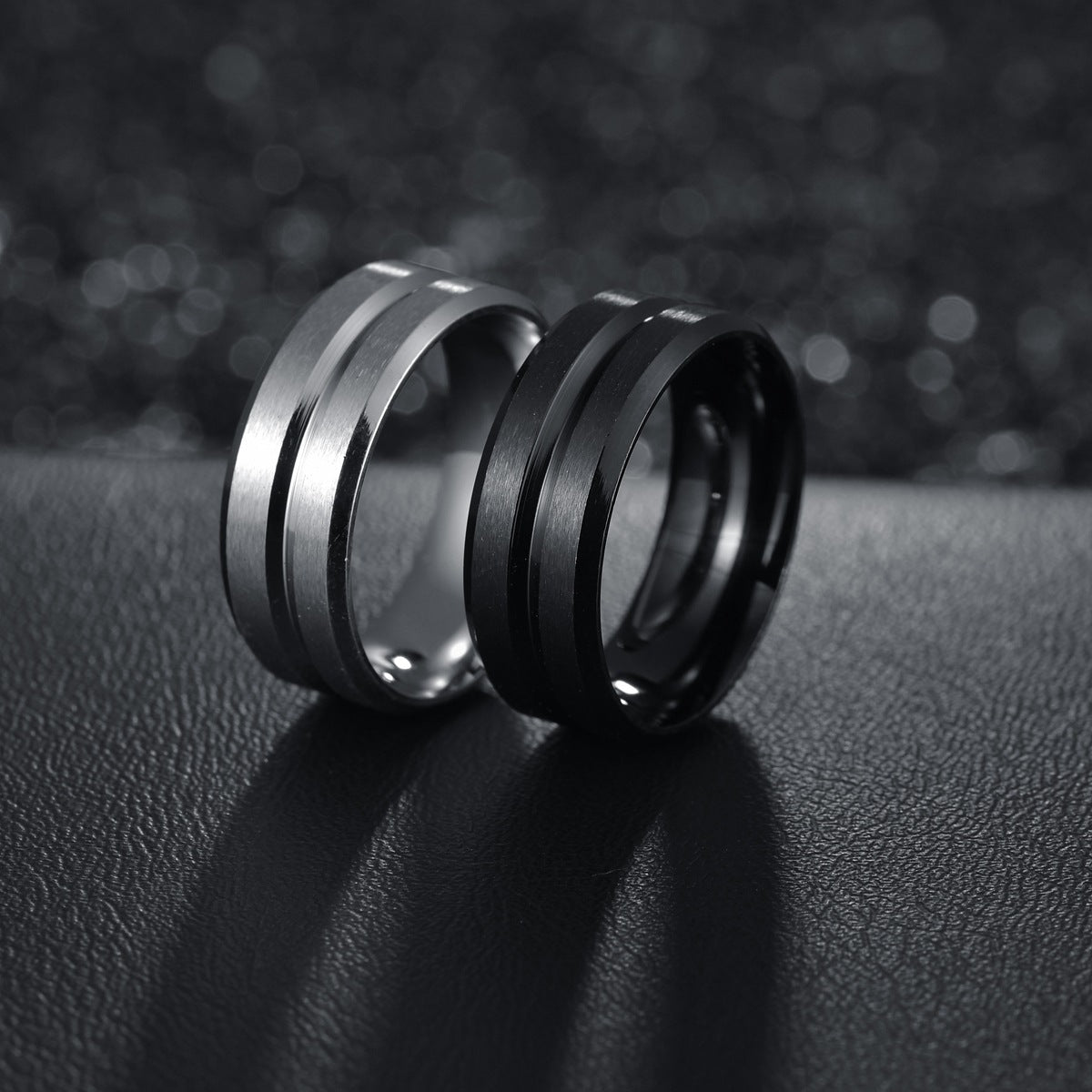 Fashion 8mm Black Plated Rotatable Titanium Steel Ring Set