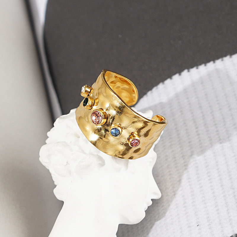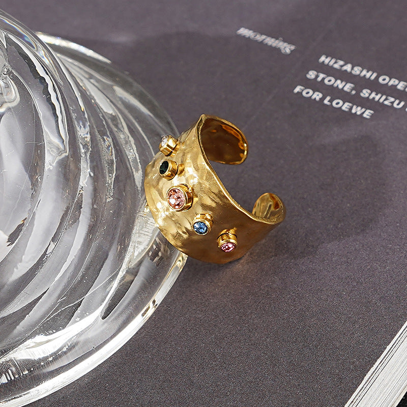 18k Gold Plated Titanium Steel Multicolor Zircon Open Band Ring