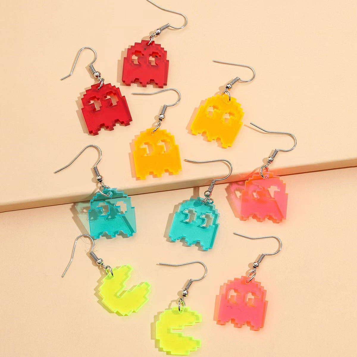 Fluorescent Cartoon Pixel Heart Earrings Set - 5 Pairs