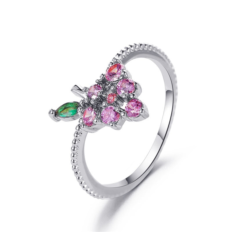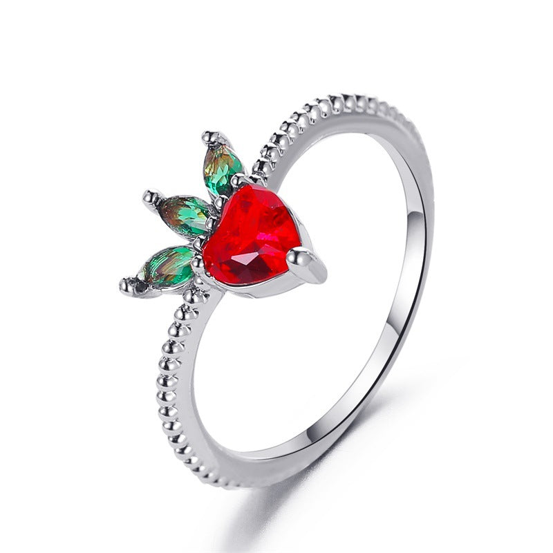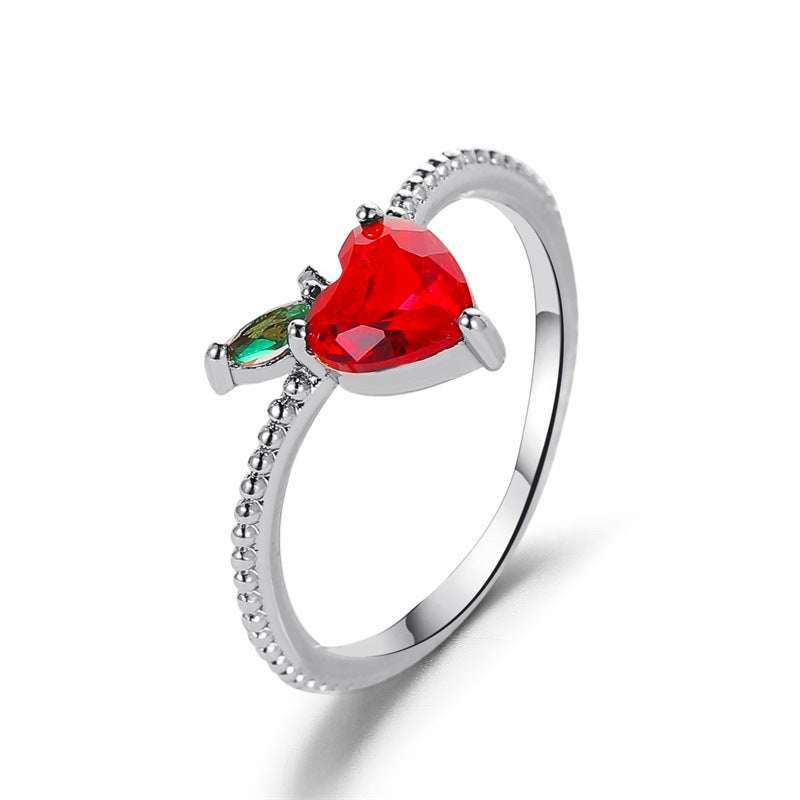 18K Gold Zirconium Fruit Earrings and Cute Fruit Rings Set