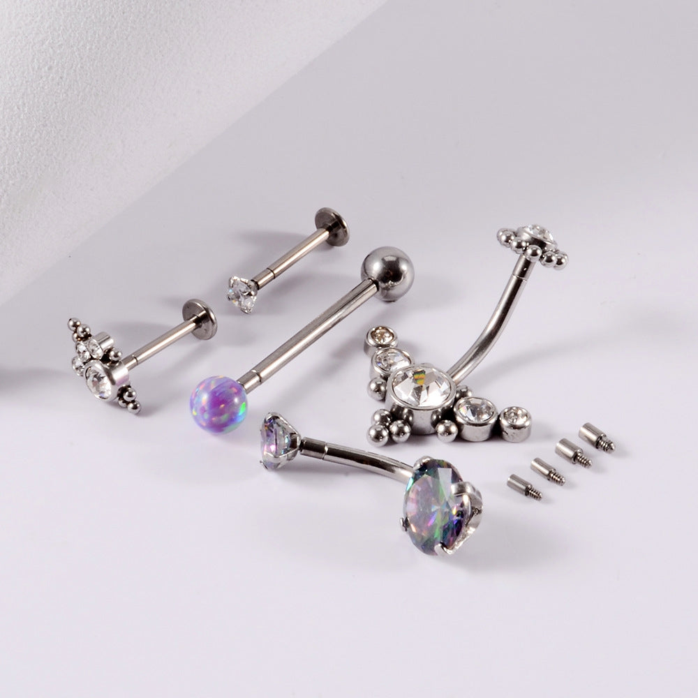 G23 Titanium Lip Stud with Extension Rod for Internal Thread Piercing Jewelry