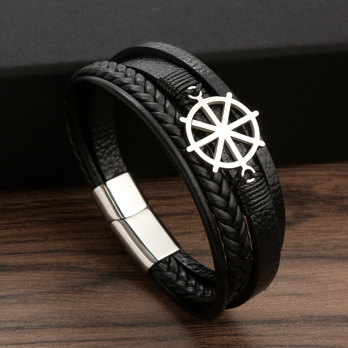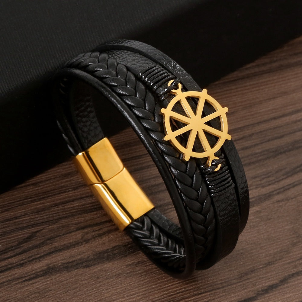 Glam Luxurious Rudder Stainless Steel Leather Handmade Men's Bracelet