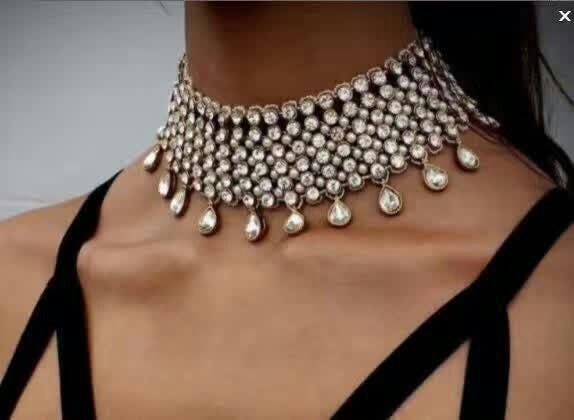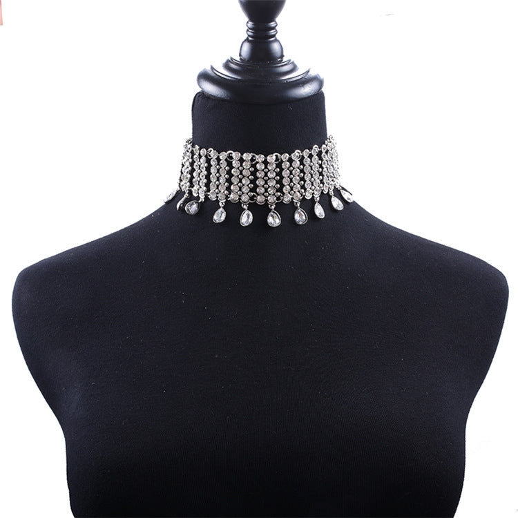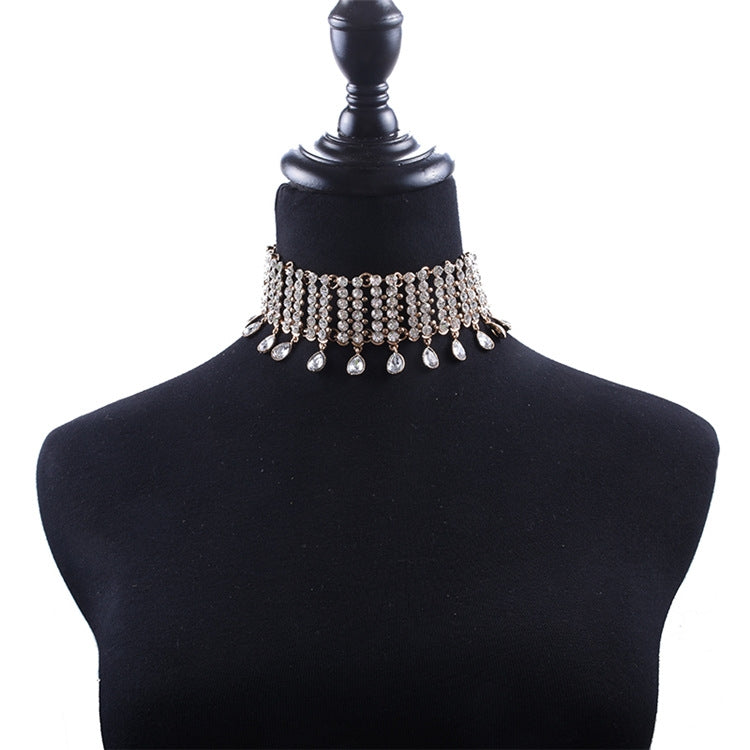Glam Shiny Gemstone Inlay Women's Choker Necklace