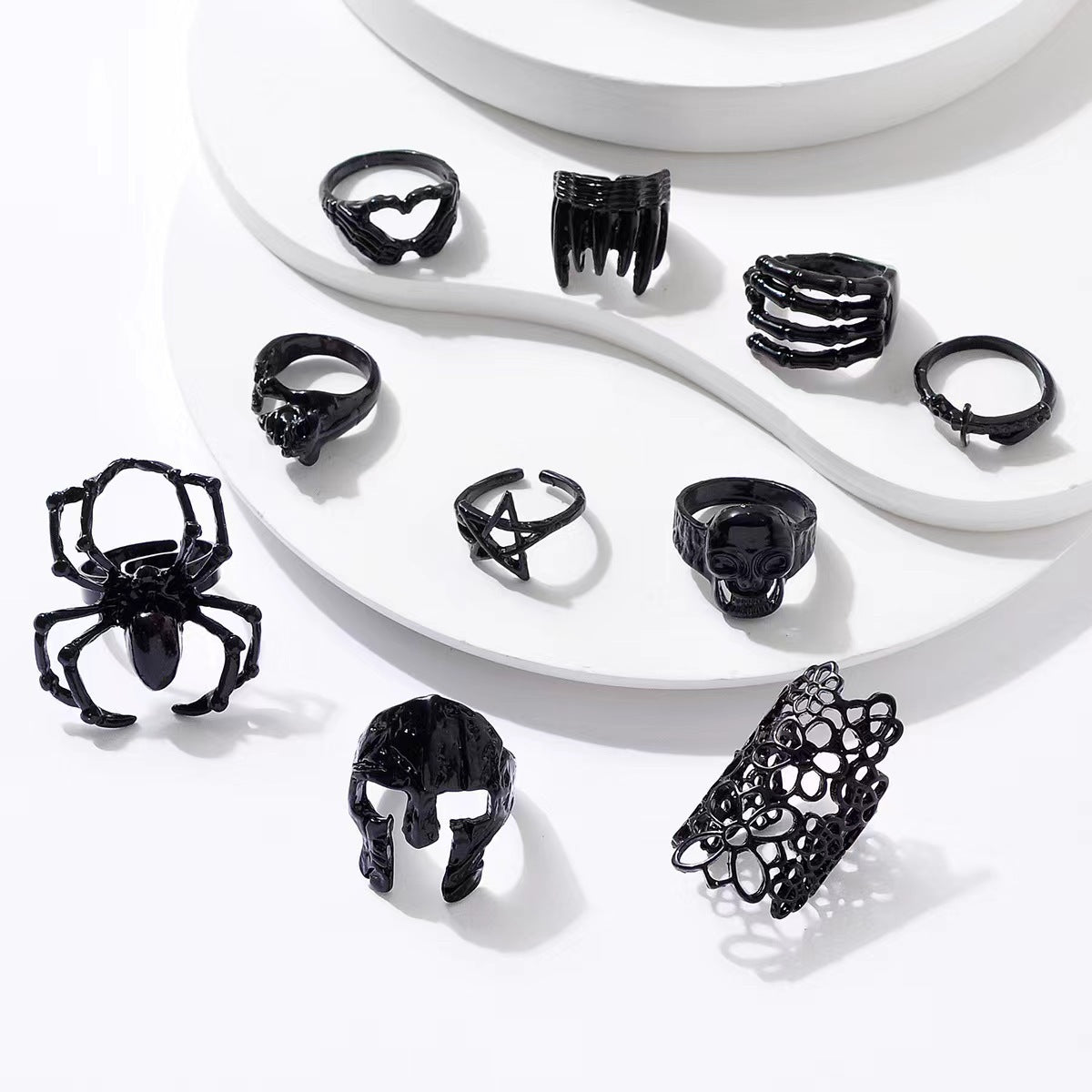 Gothic Star Spider Skull Adjustable Alloy Ring Set - 10 Pieces
