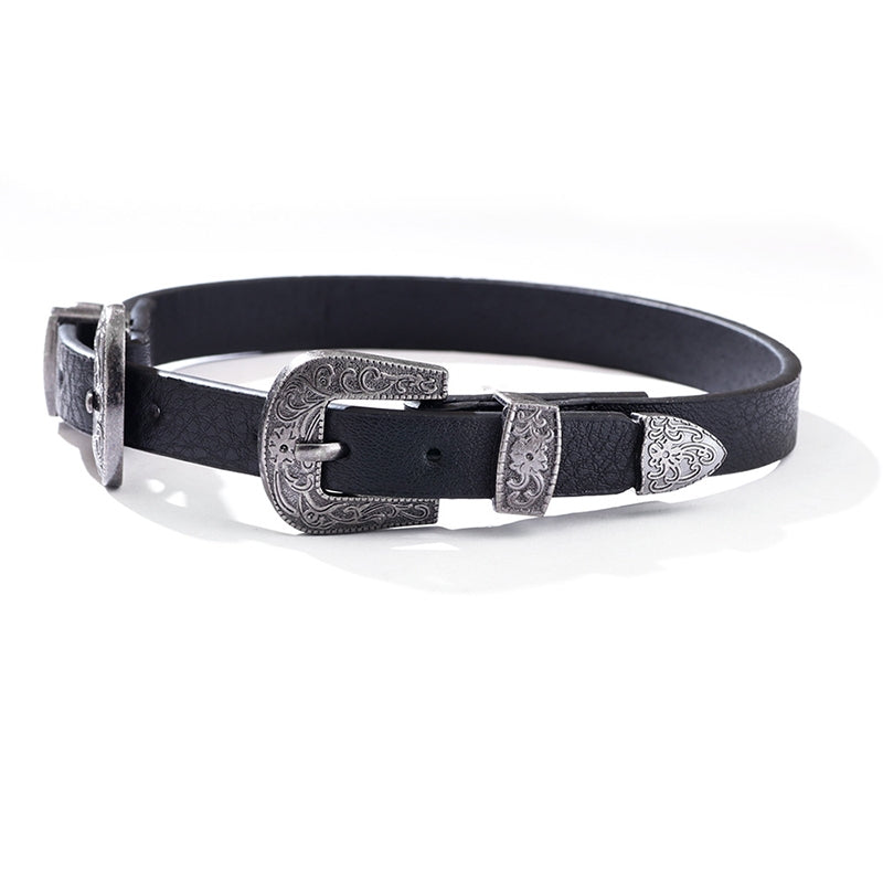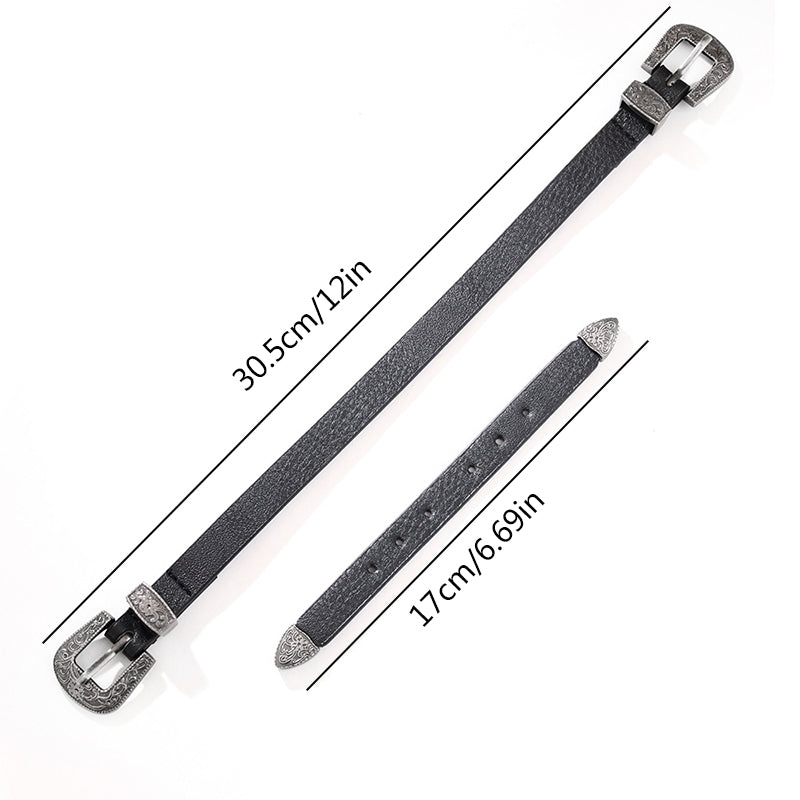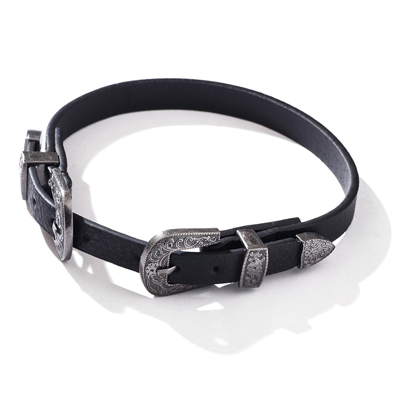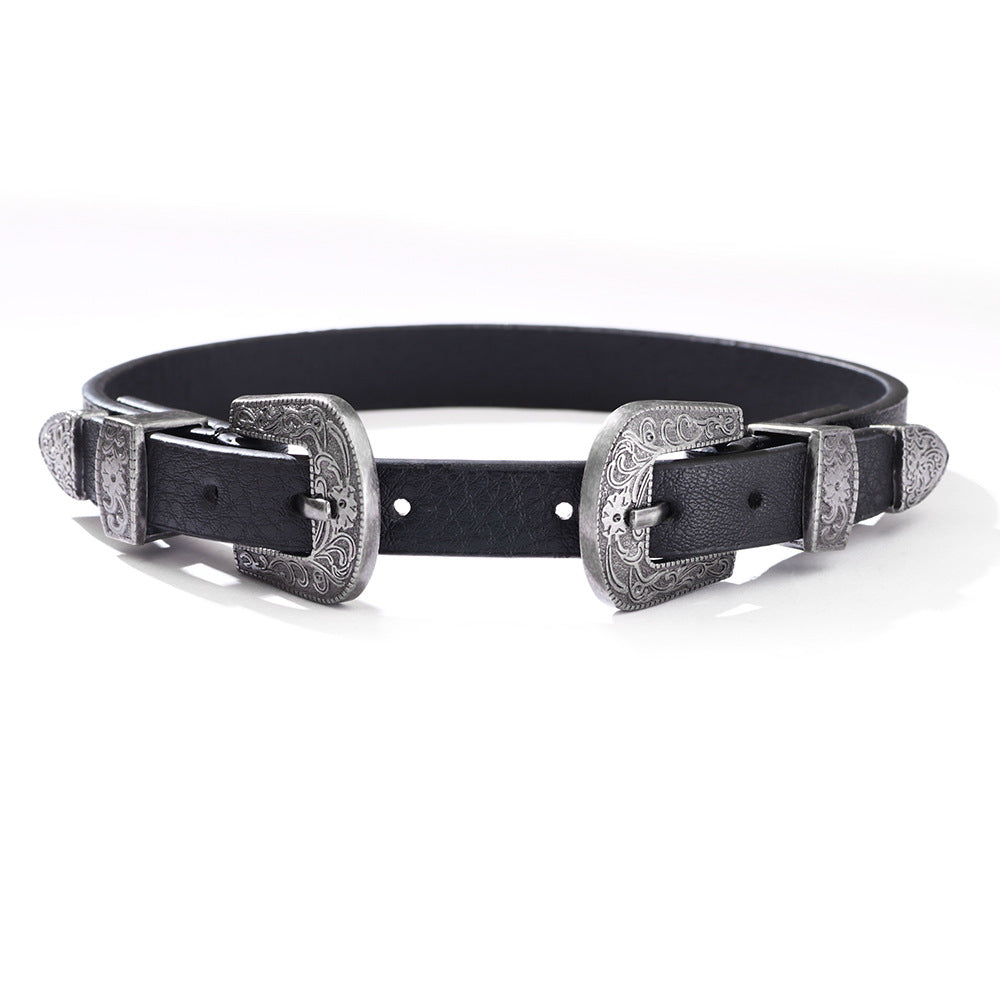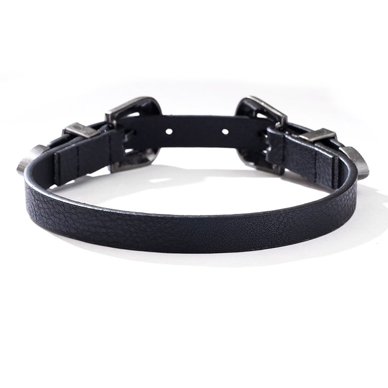 Gothic Retro Punk Monogram PU Leather Choker with Double Buckle Alloy Necklace
