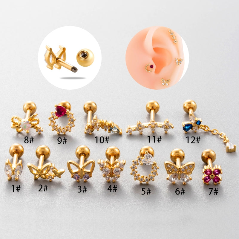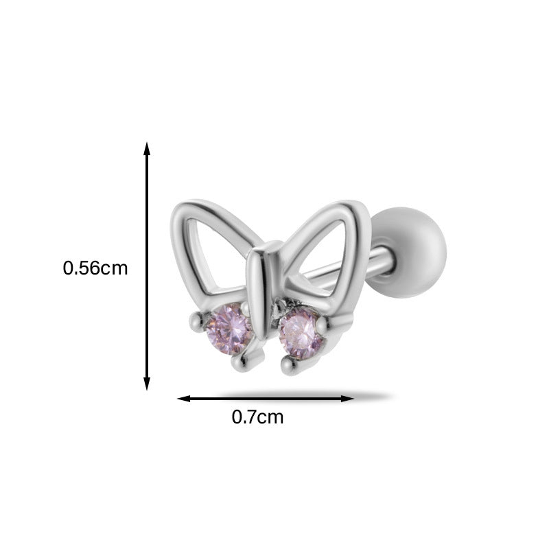 Heart & Butterfly Zircon Stainless Steel Cartilage Earrings