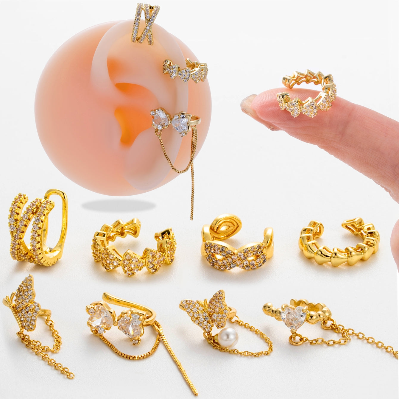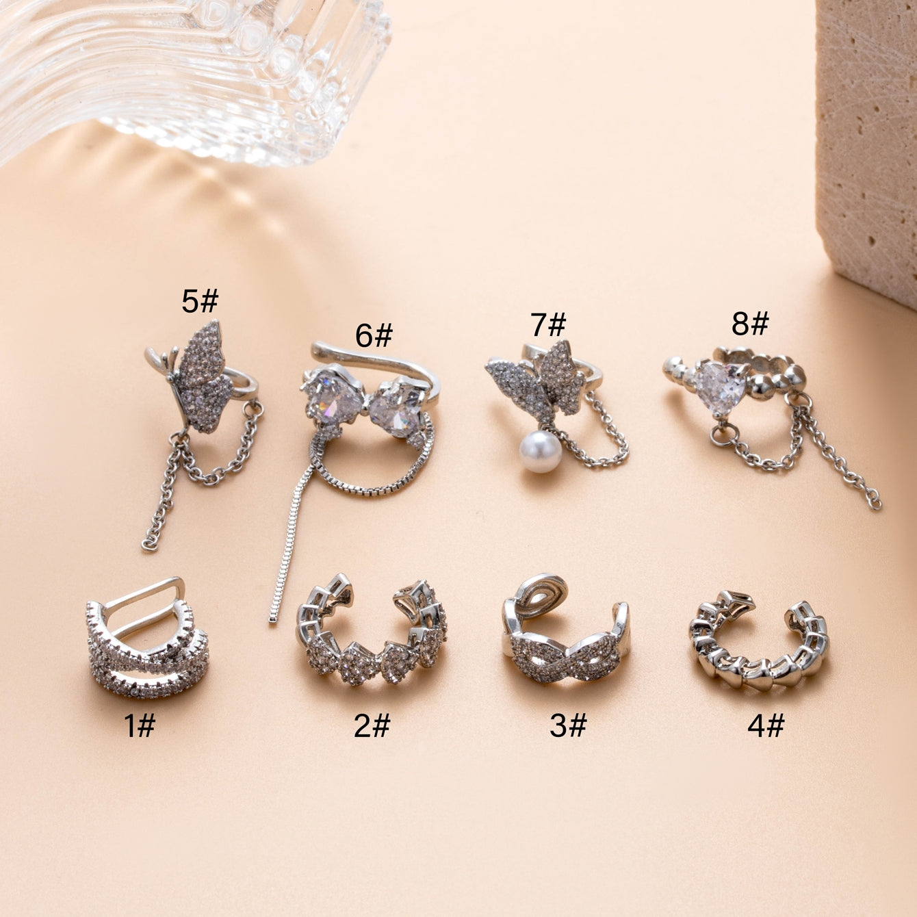 Heart Shape Butterfly Zircon Cartilage Ear Clip Earrings