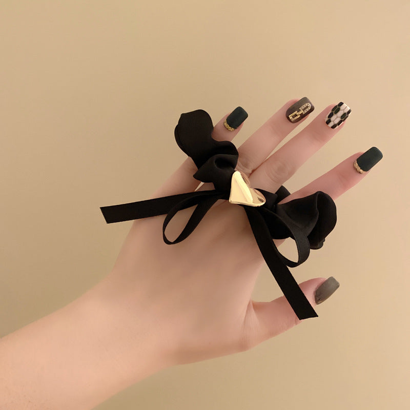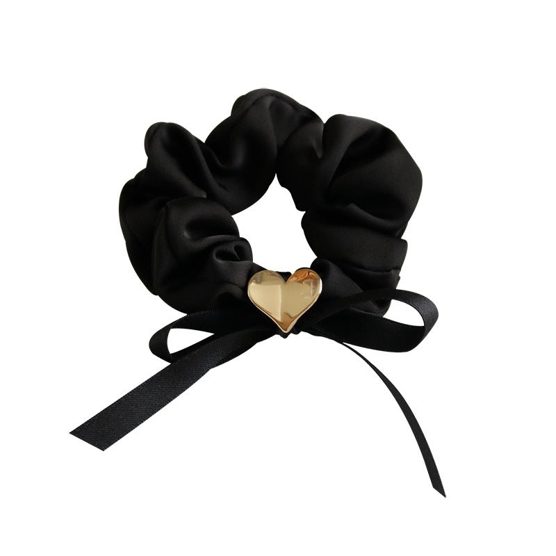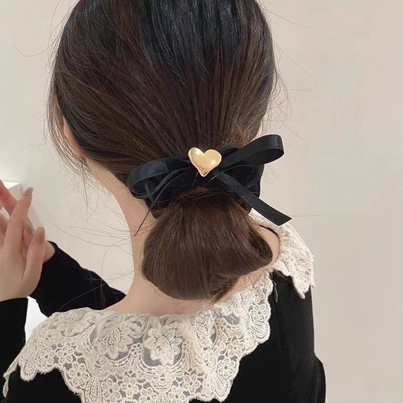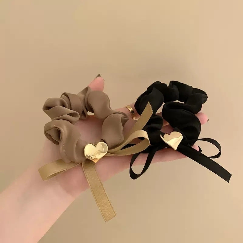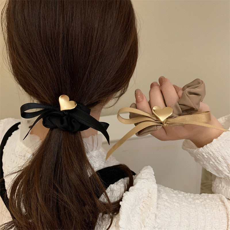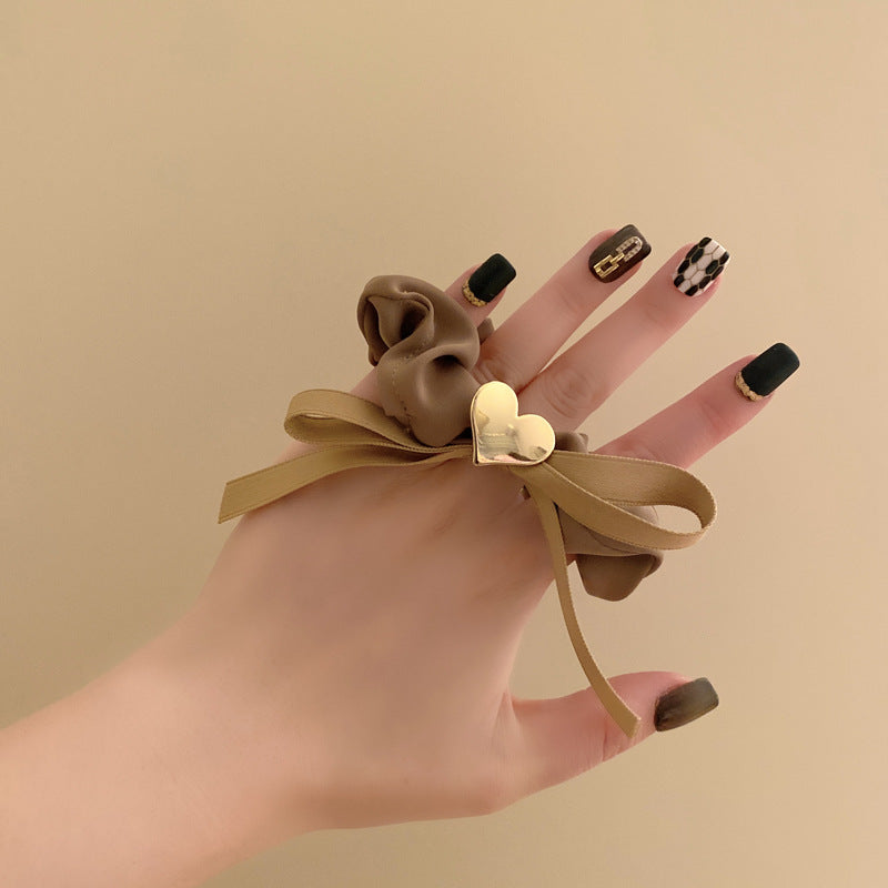 Heart Shape Metal Love Hair Tie with Streamer Bow and Leather Band