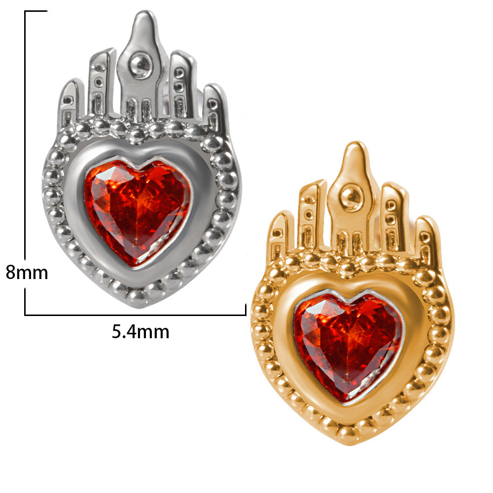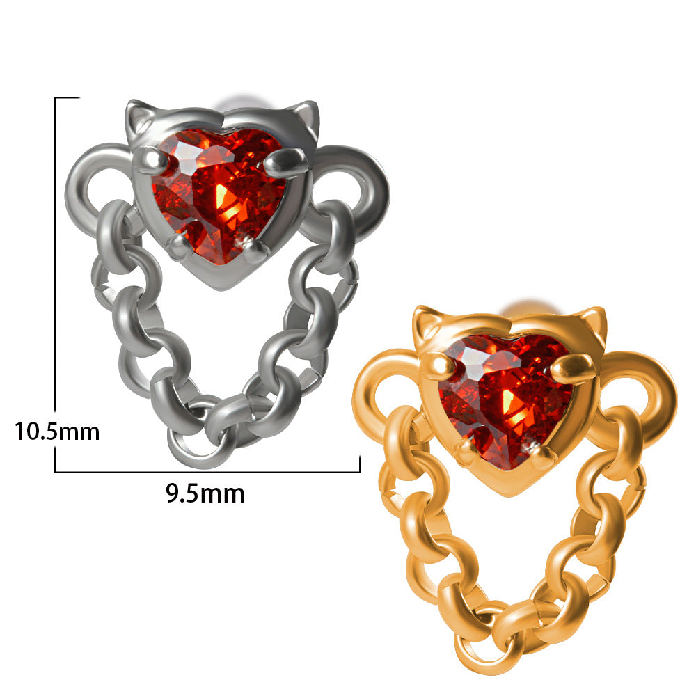 Heart Shape Stainless Steel Rhinestone Stud Earrings with Chain