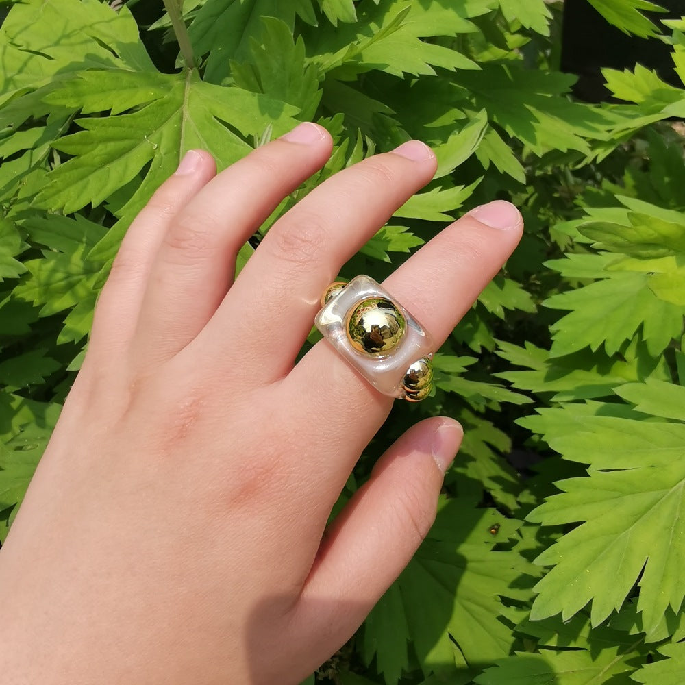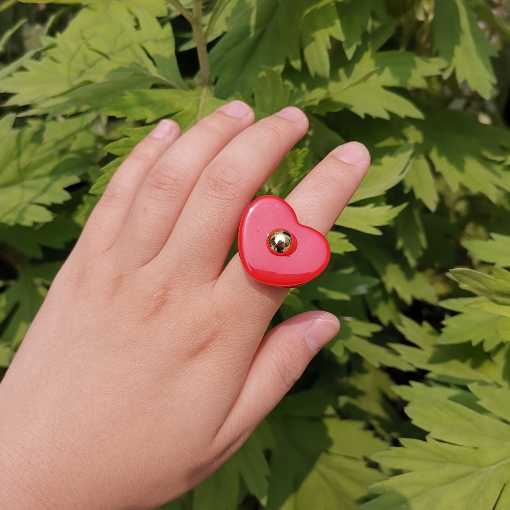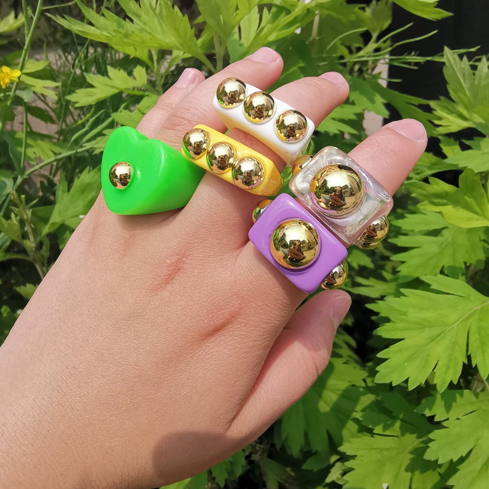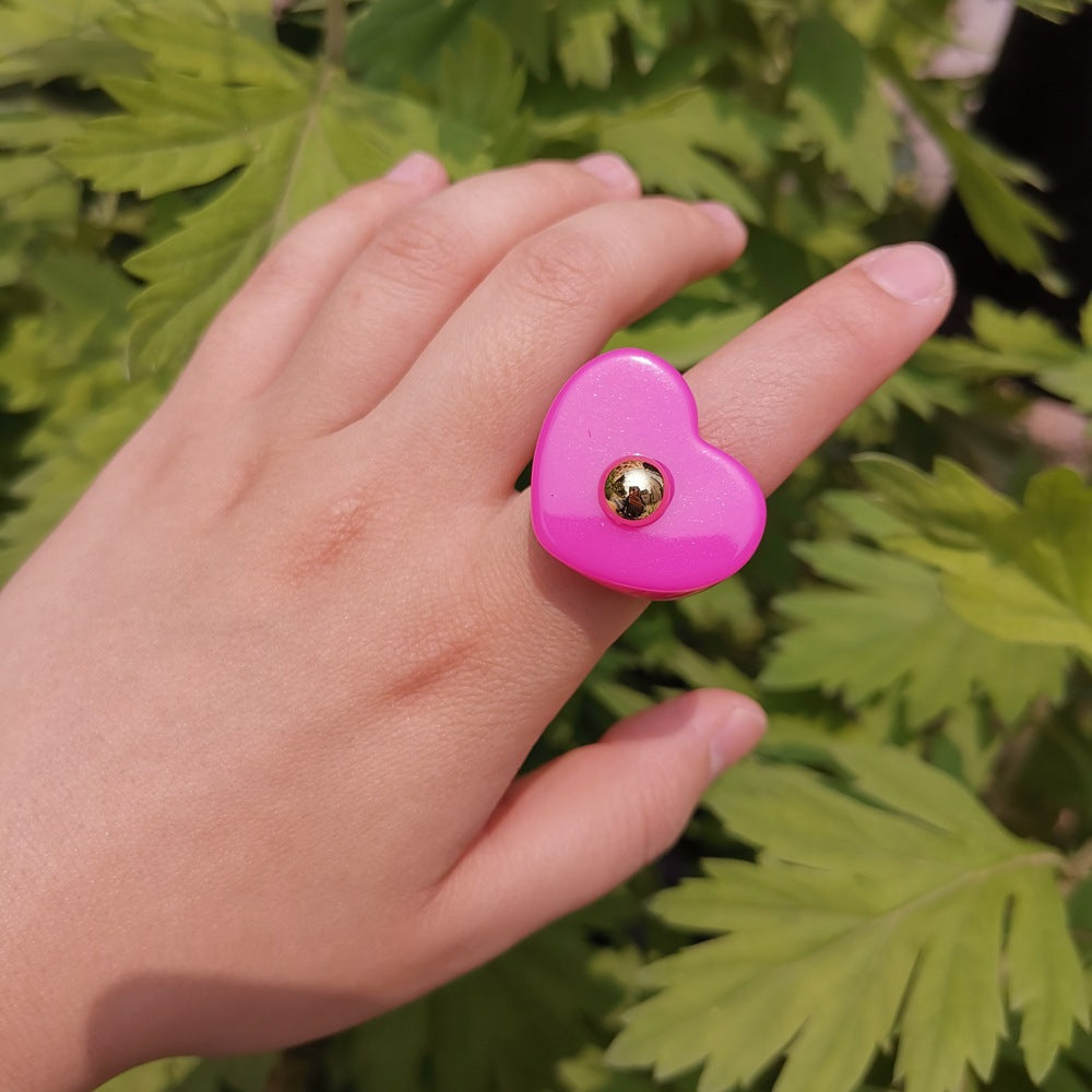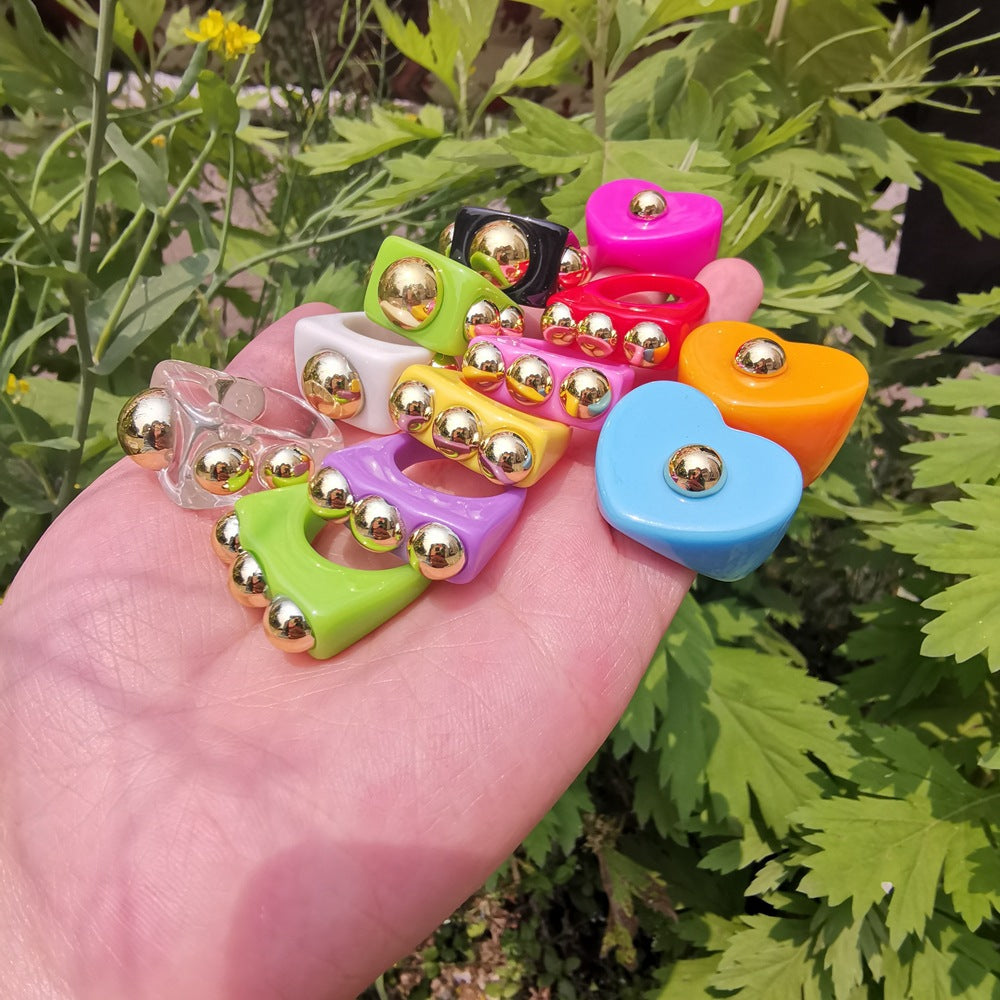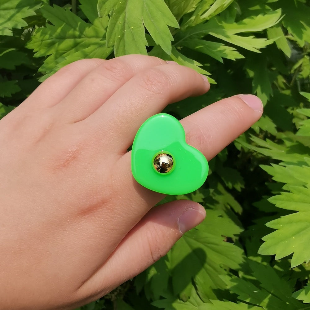 Heart-Shaped Irregular Multicolor Acrylic Resin Ring for Women