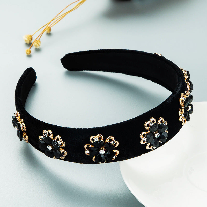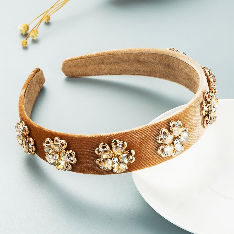 Heming Baroque Crystal Edelweiss Flannel Headband Fashion Korean Style Hair Accessories