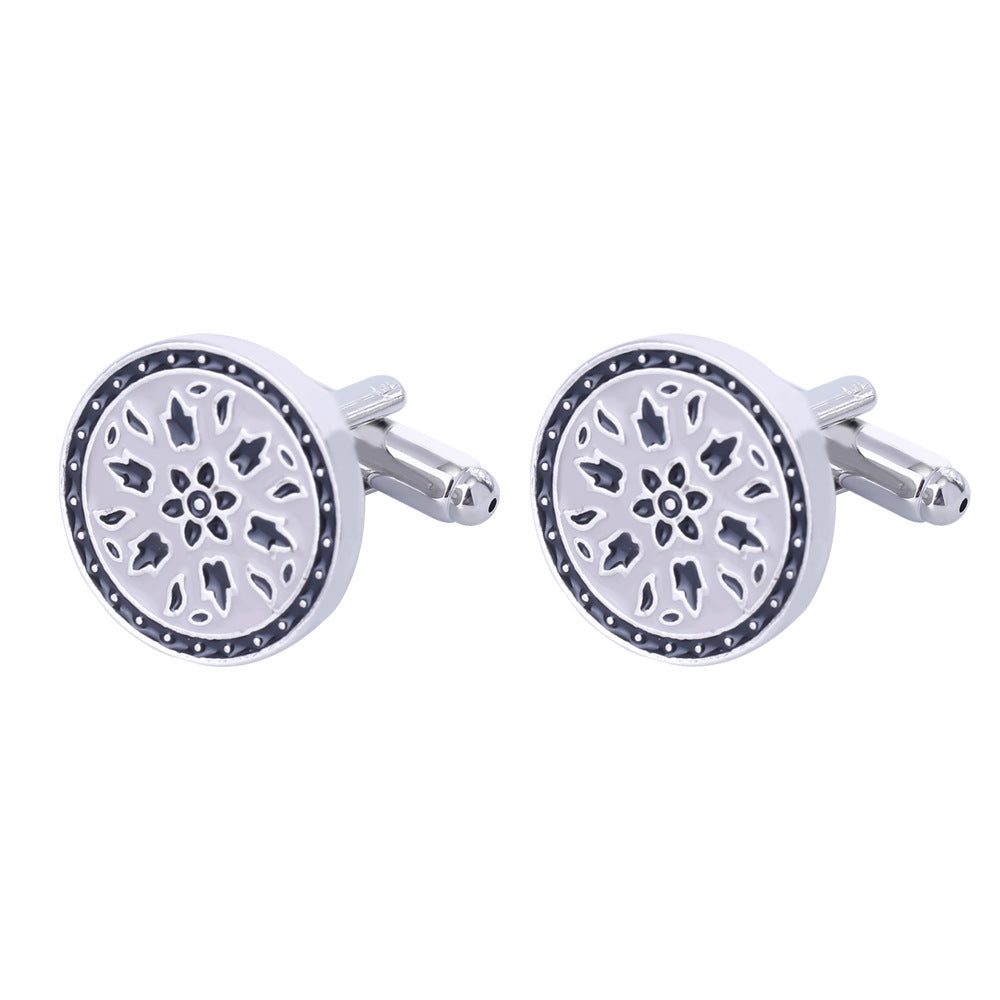 Titanium Steel Diamond Flower Cufflinks for Men