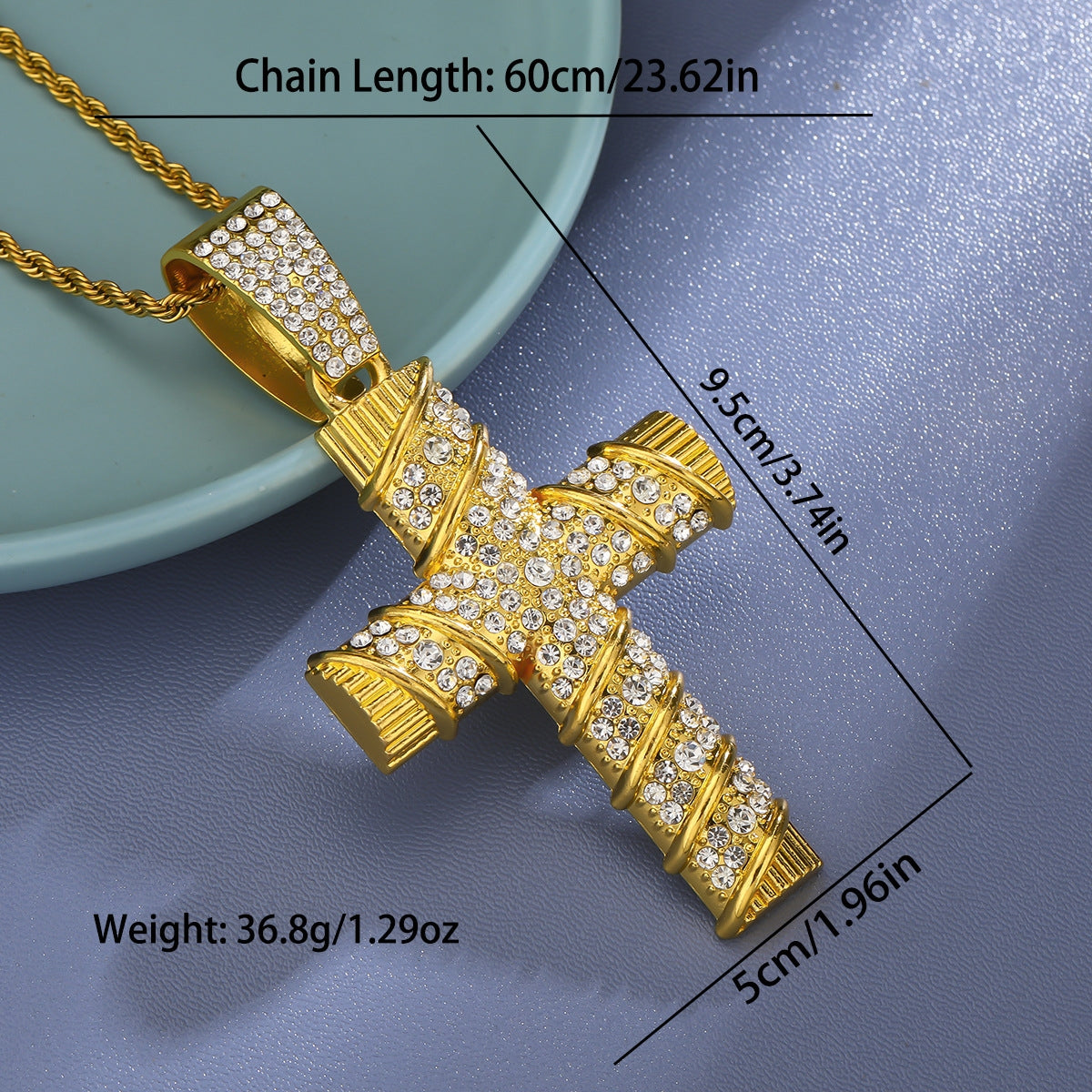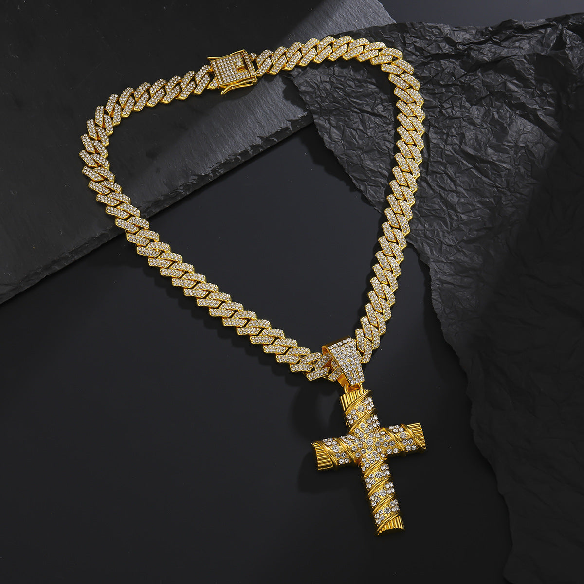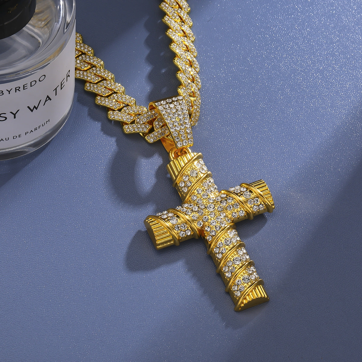 Hip-Hop Cross Diamond Pendant Necklace with Cuban Chain