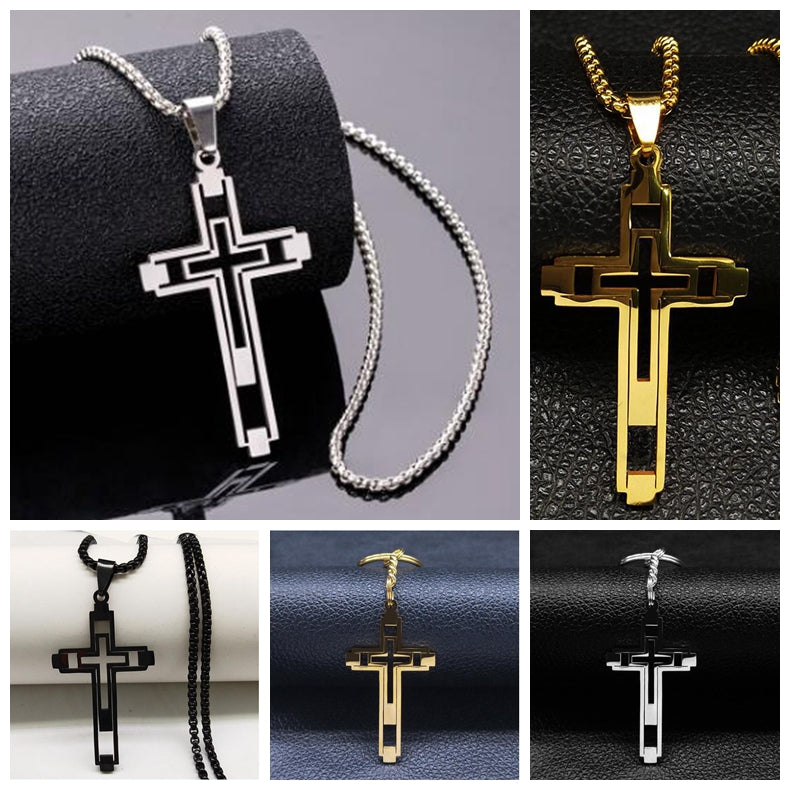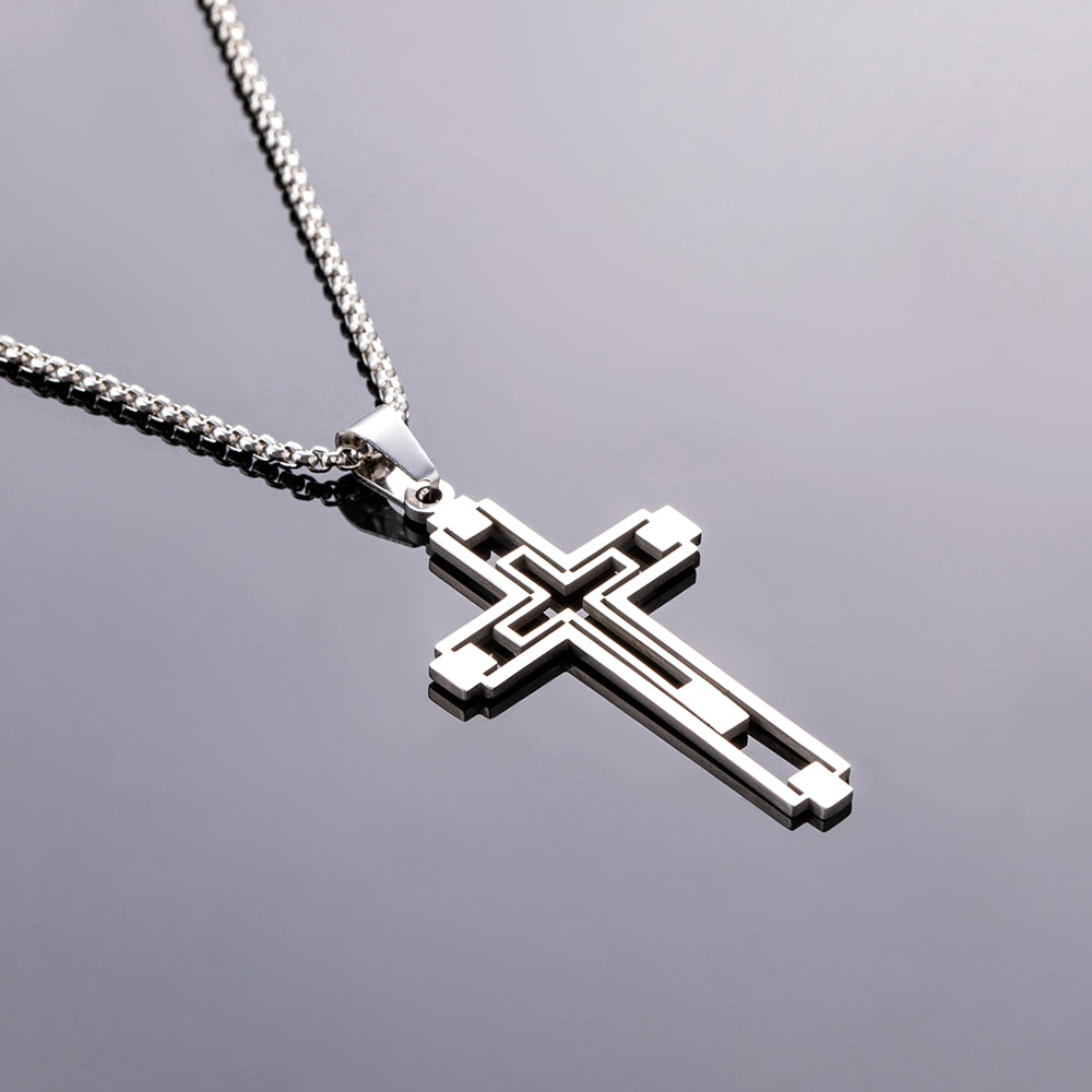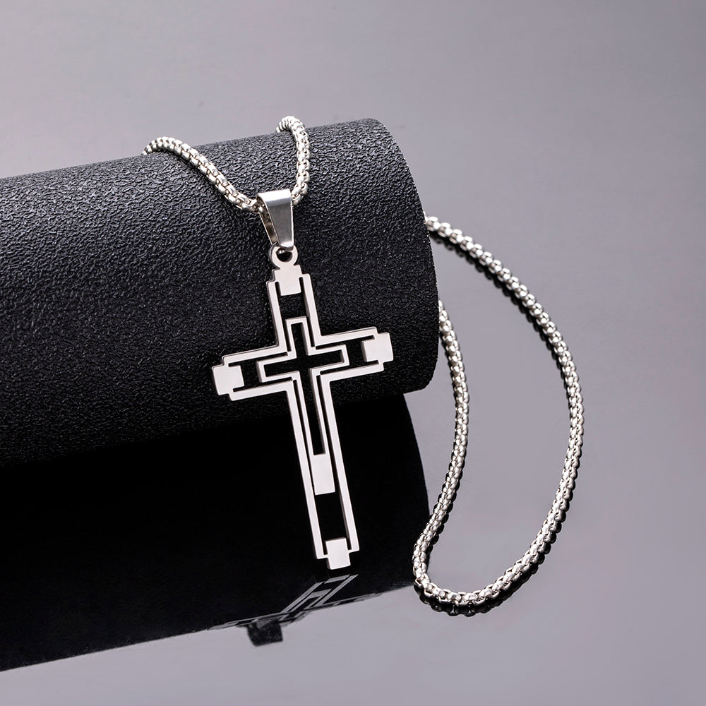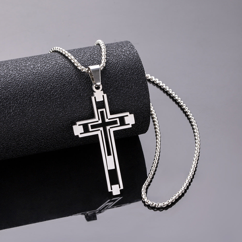 Hip-Hop Hollow Cross Stainless Steel Pendant Necklace