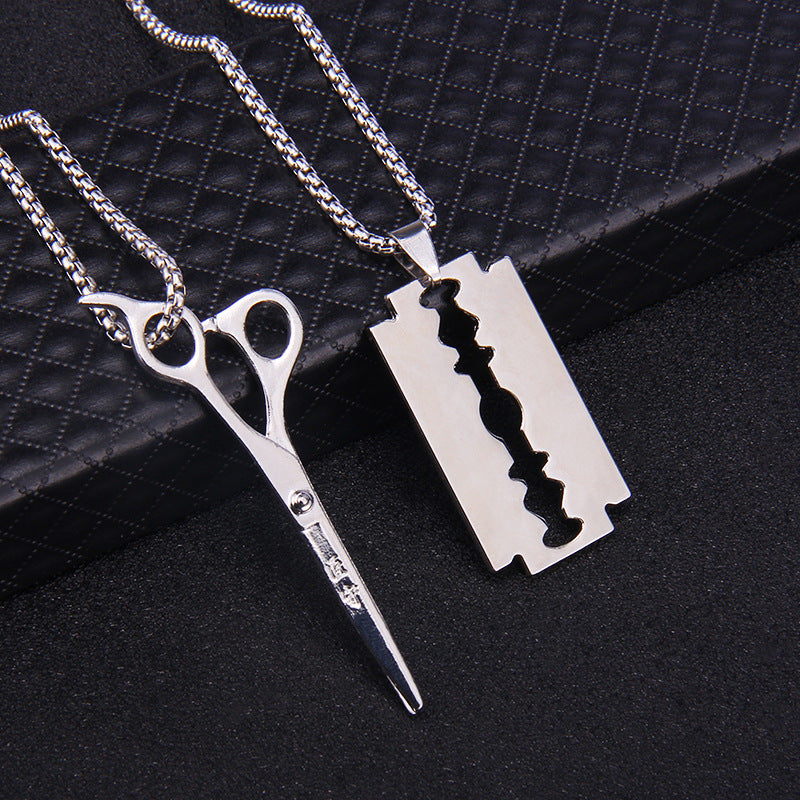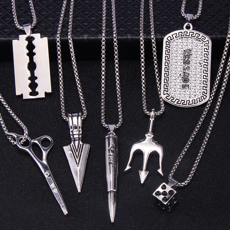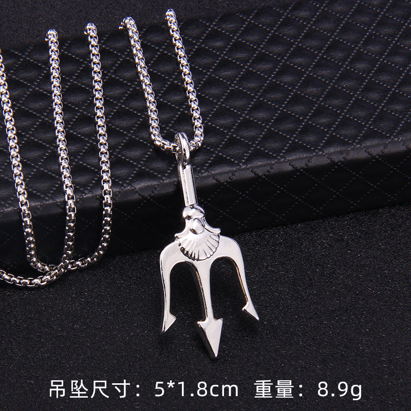 Hip-Hop Geometric Trident Blade Pendant Necklace for Men