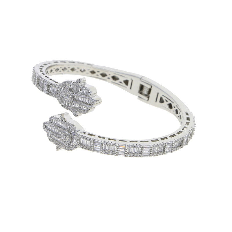 Hip-hop Hamsa Hand Copper Zircon Open Cuff Bracelet