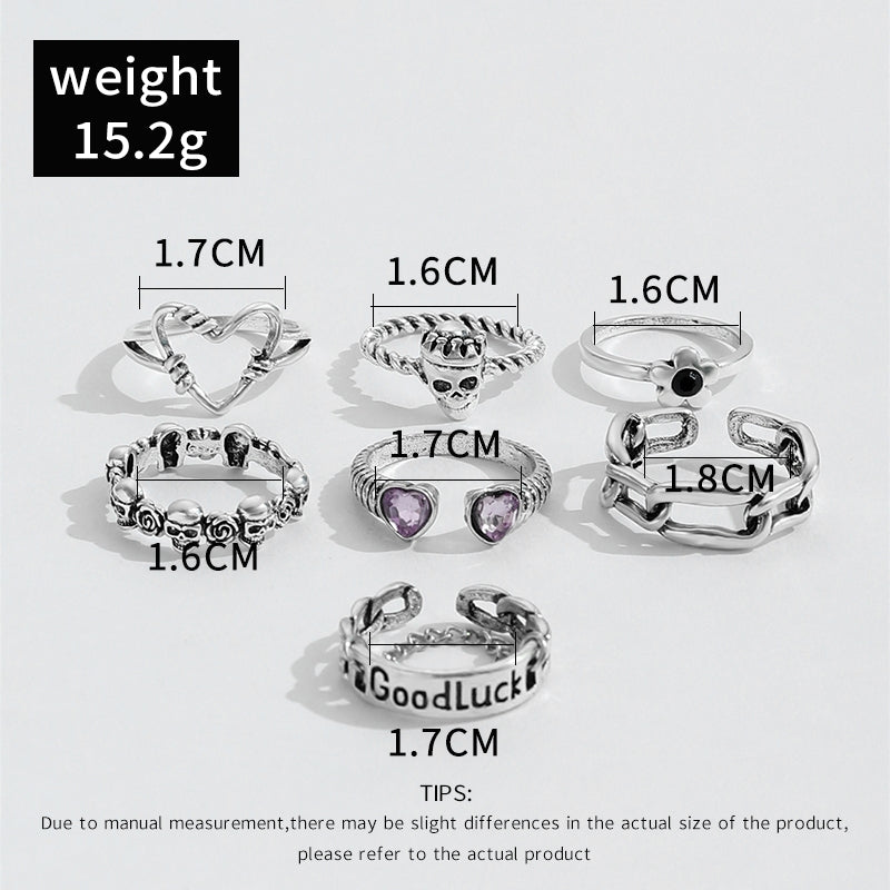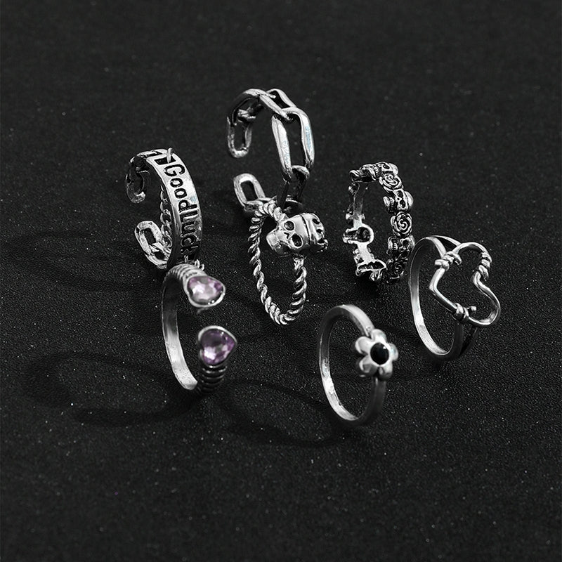 Hip-hop Heart Shape Rose Skull Rhinestone Adjustable Ring for Men