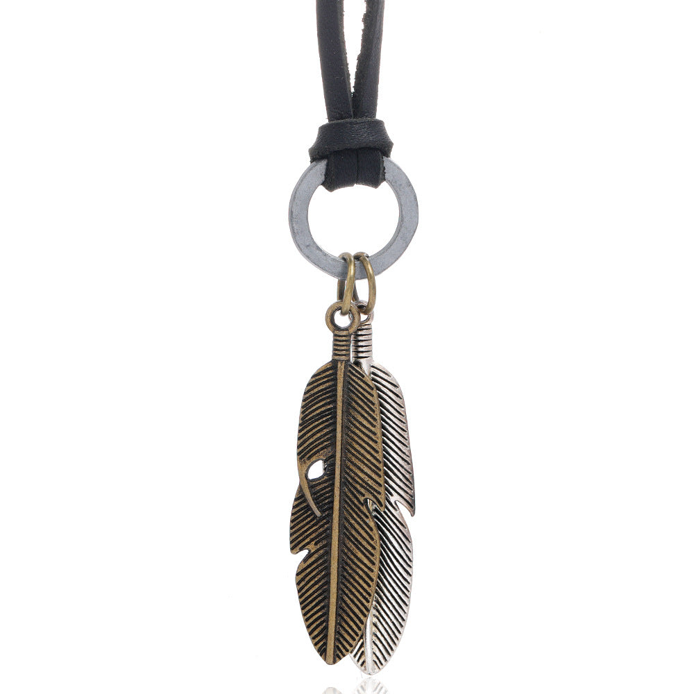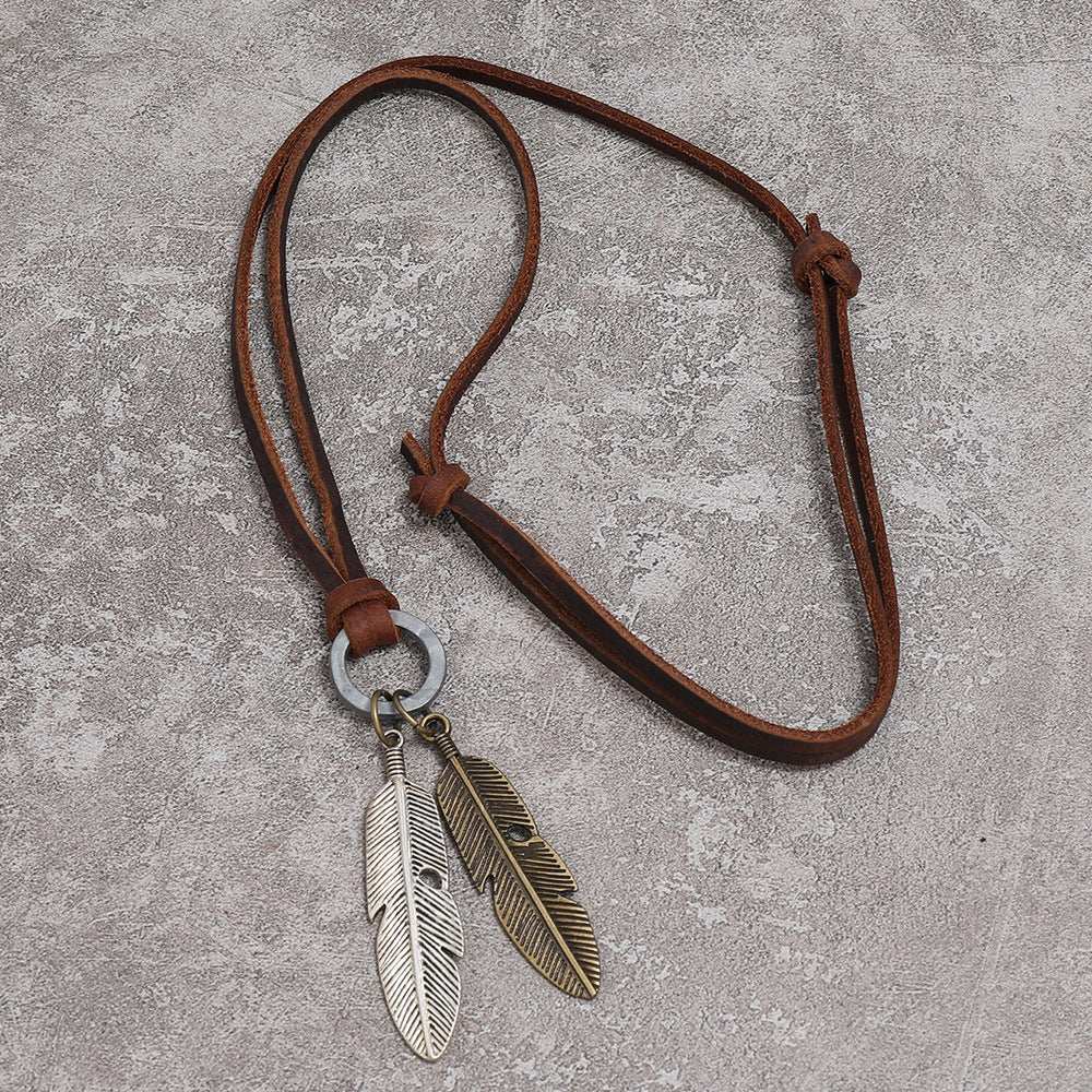 Hip-hop Retro Alloy Feather Adjustable Leather Necklace