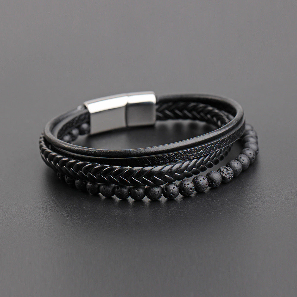 Hip-hop Stainless Steel Leather Braided Men's Bracelet