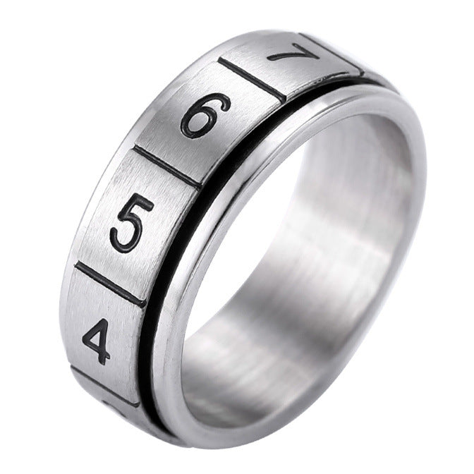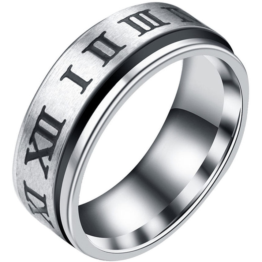 Roman Numeral Rotating Titanium Steel Ring - 8mm Vintage Men's Band