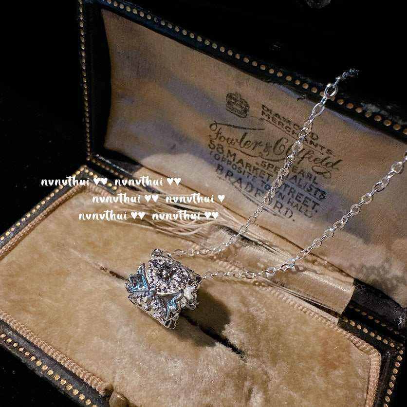 3016GZ gold-plated white honeycomb geometry ~ zircon small cylinder necklace ~ no box