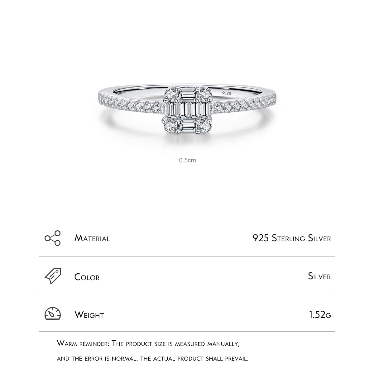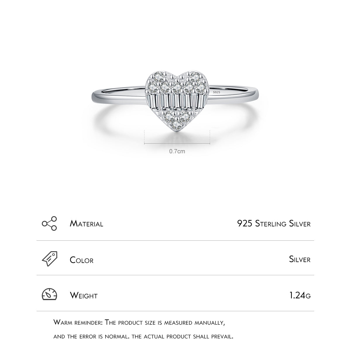 Modian S925 Sterling Silver Heart Zircon Ring for Women - Fashionable and Versatile Cube Design