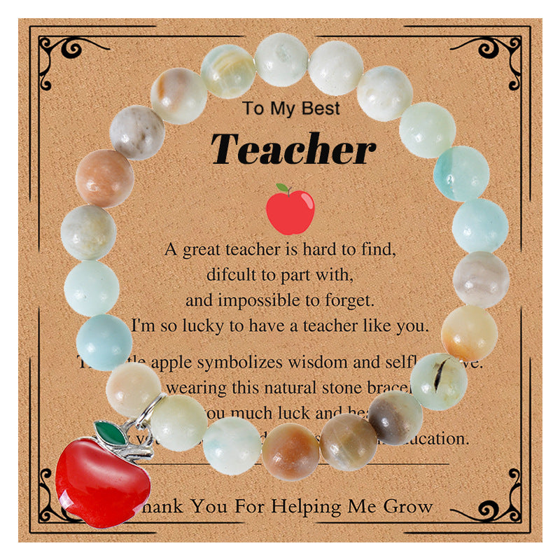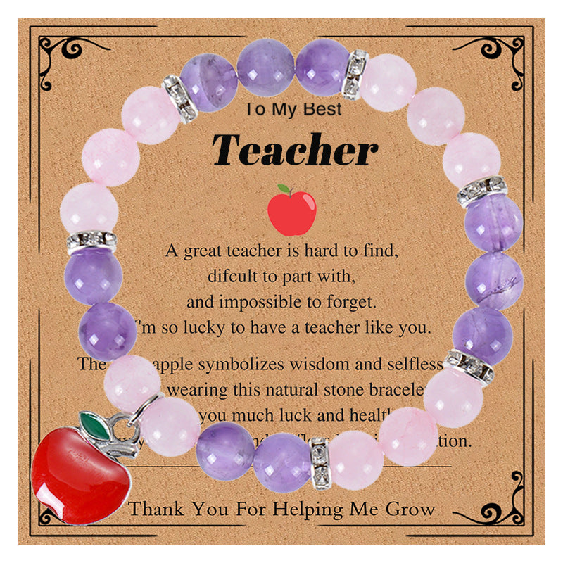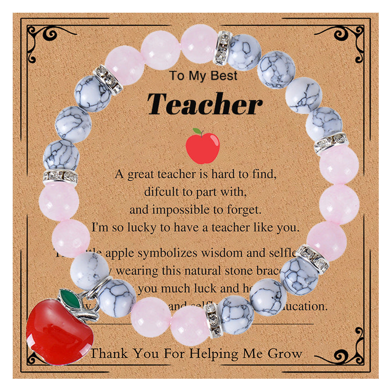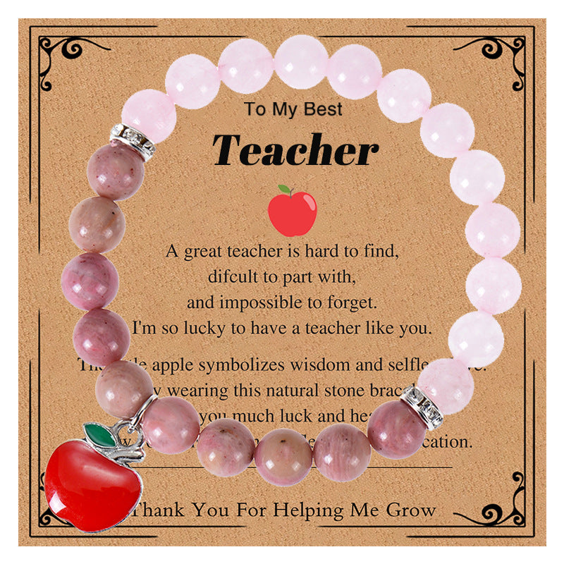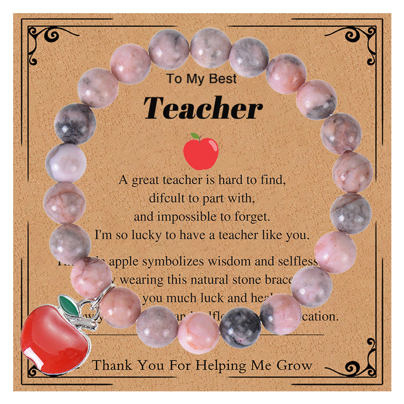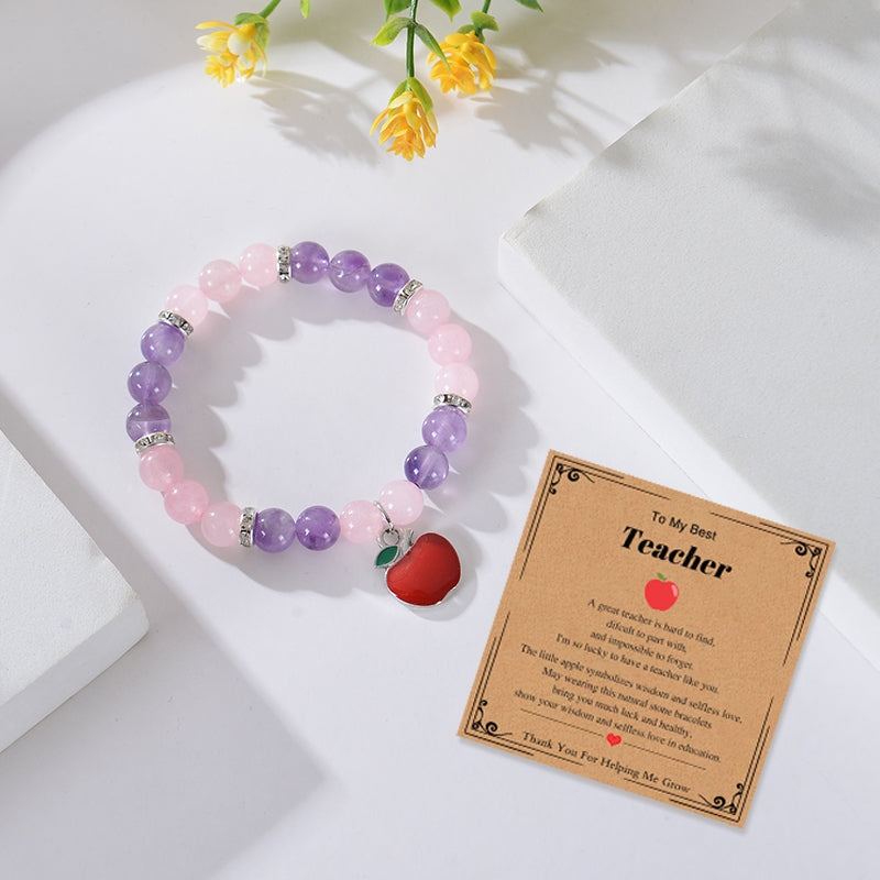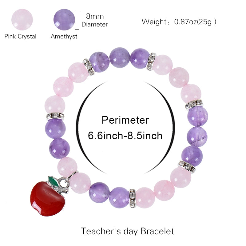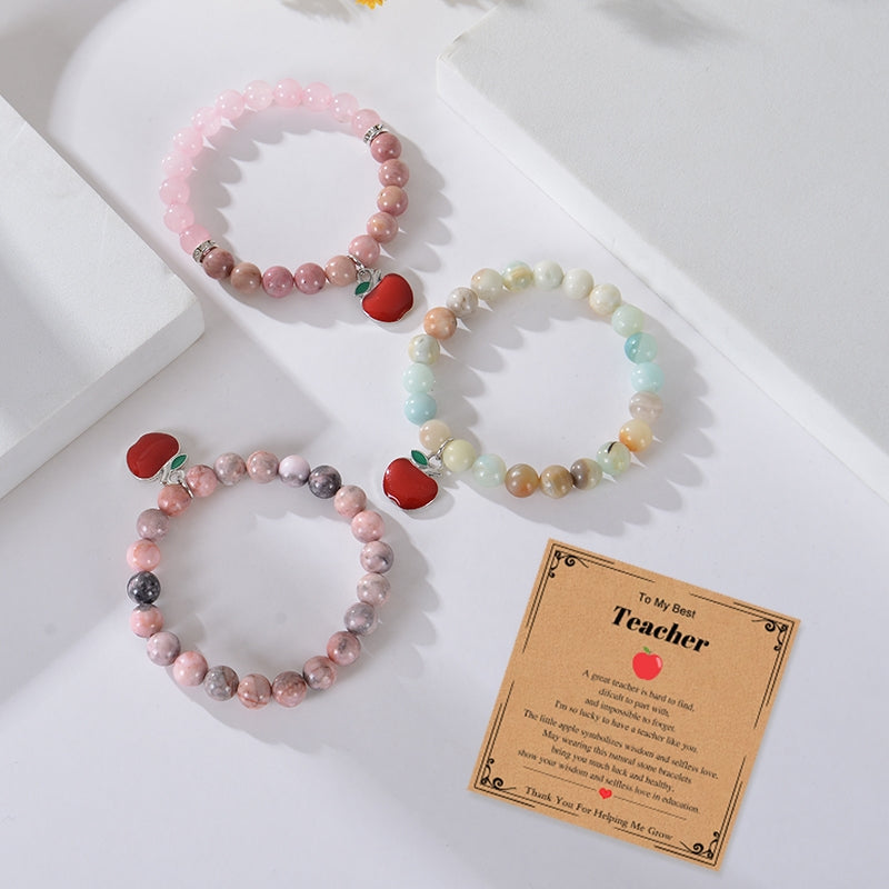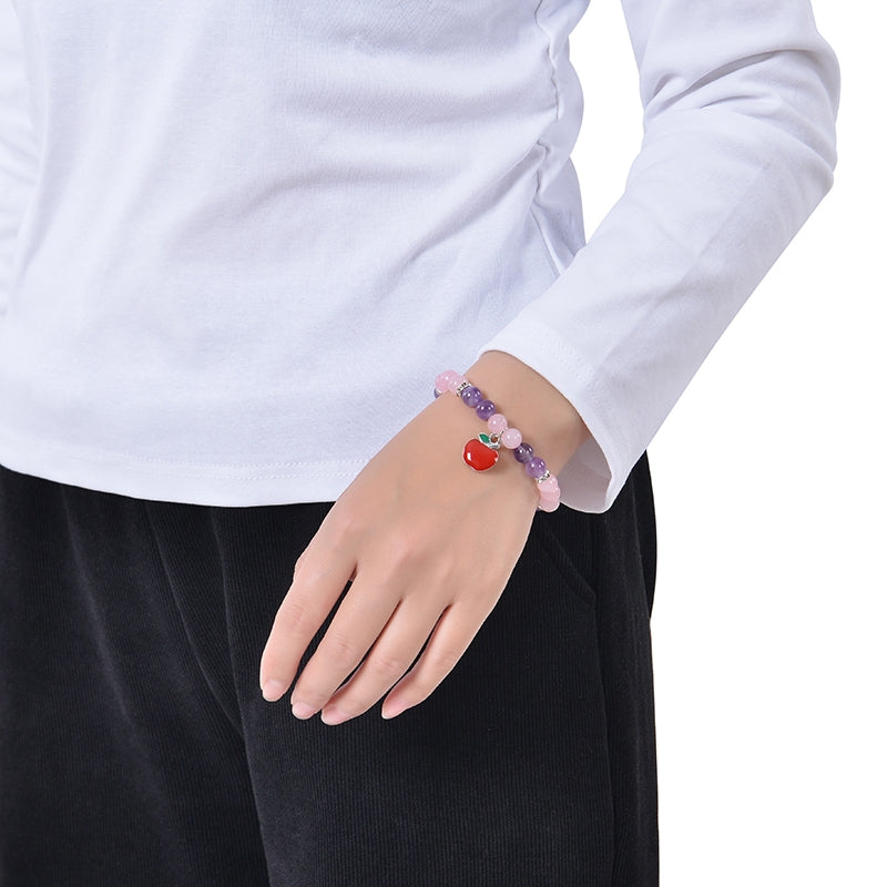 IG Style Apple Natural Stone Titanium Steel Beaded Zircon Women's Bracelet with Enamel Inlay and Pink Zebra Stone Pendant
