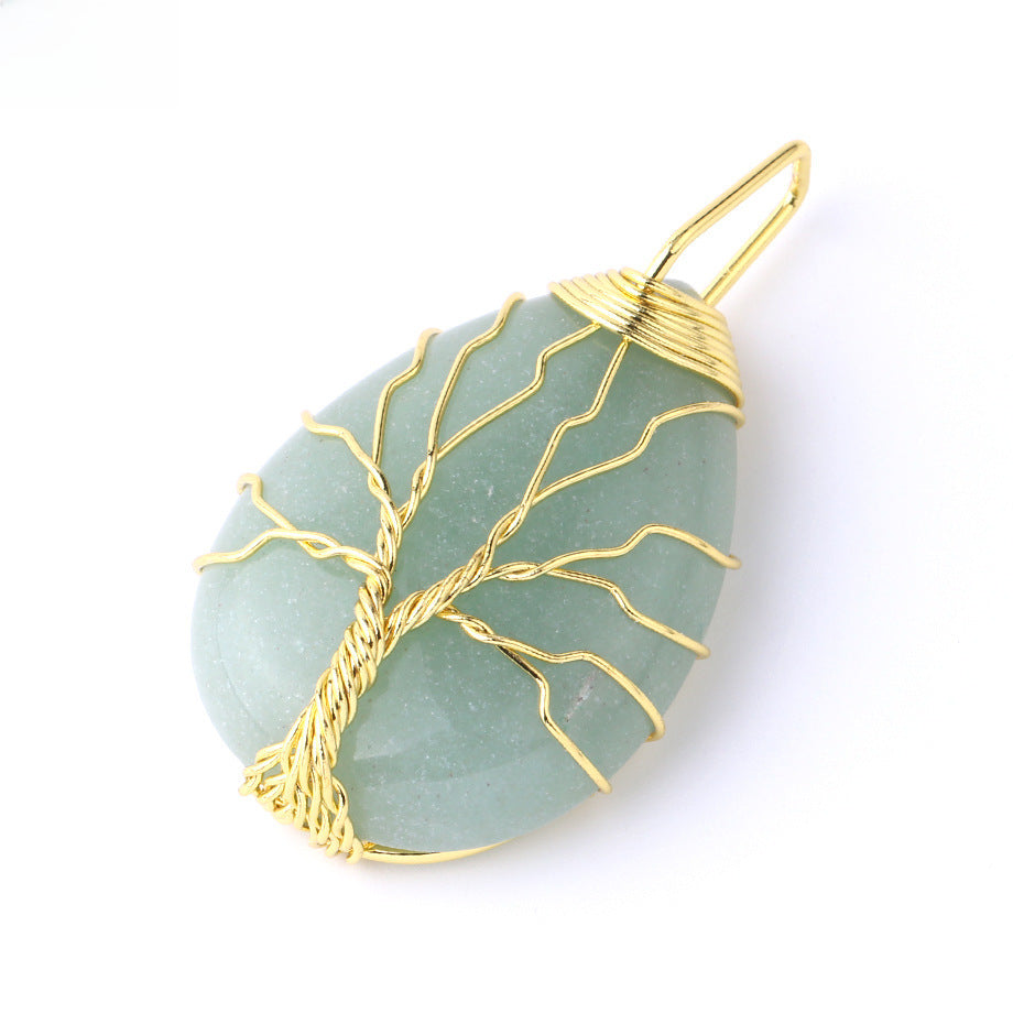 Elegant Gold & Silver Wire Wrapped Teardrop Natural Crystal Gemstone Pendant Necklace for Women