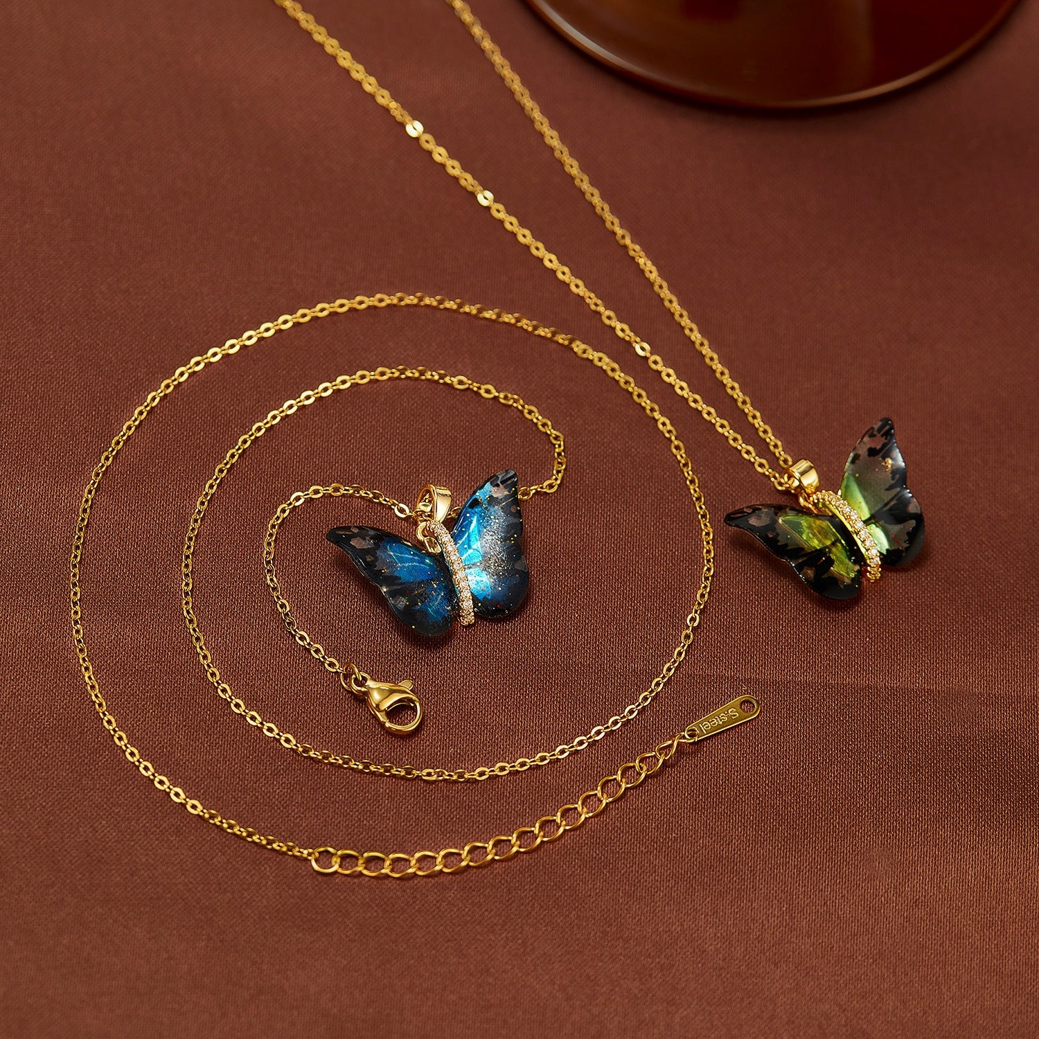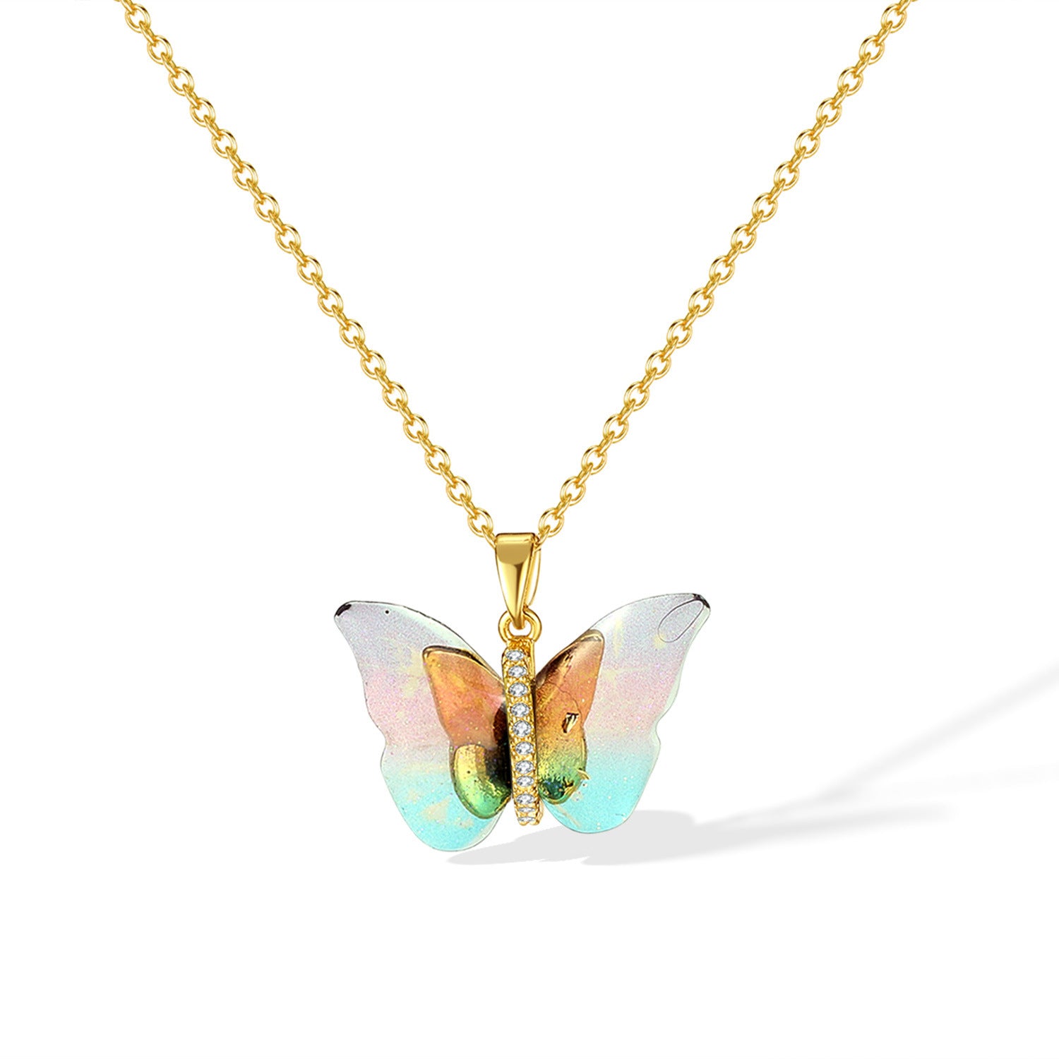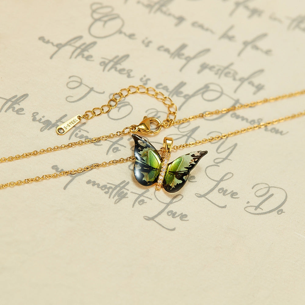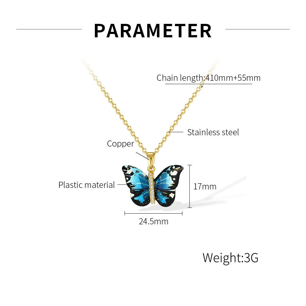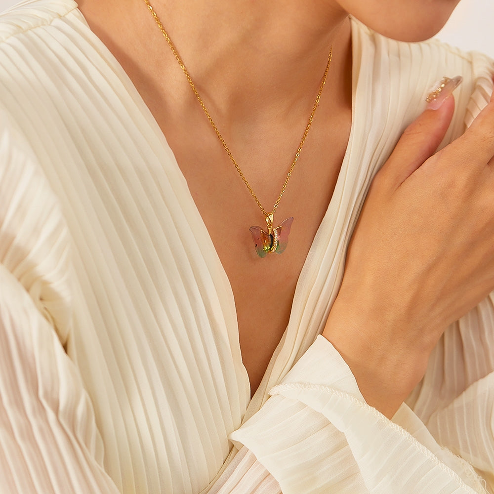 IG Style Colorful Gradient Butterfly Pendant Necklace - 304 Stainless Steel & Copper Inlay Women's Jewelry