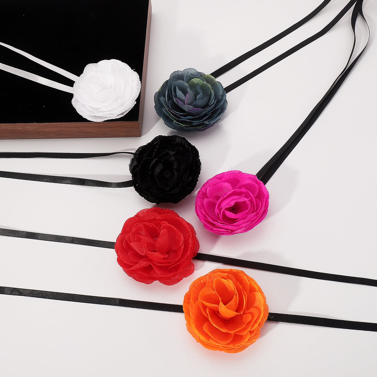 IG Style Sweet Flower Rose Choker Necklace with Bow Tie