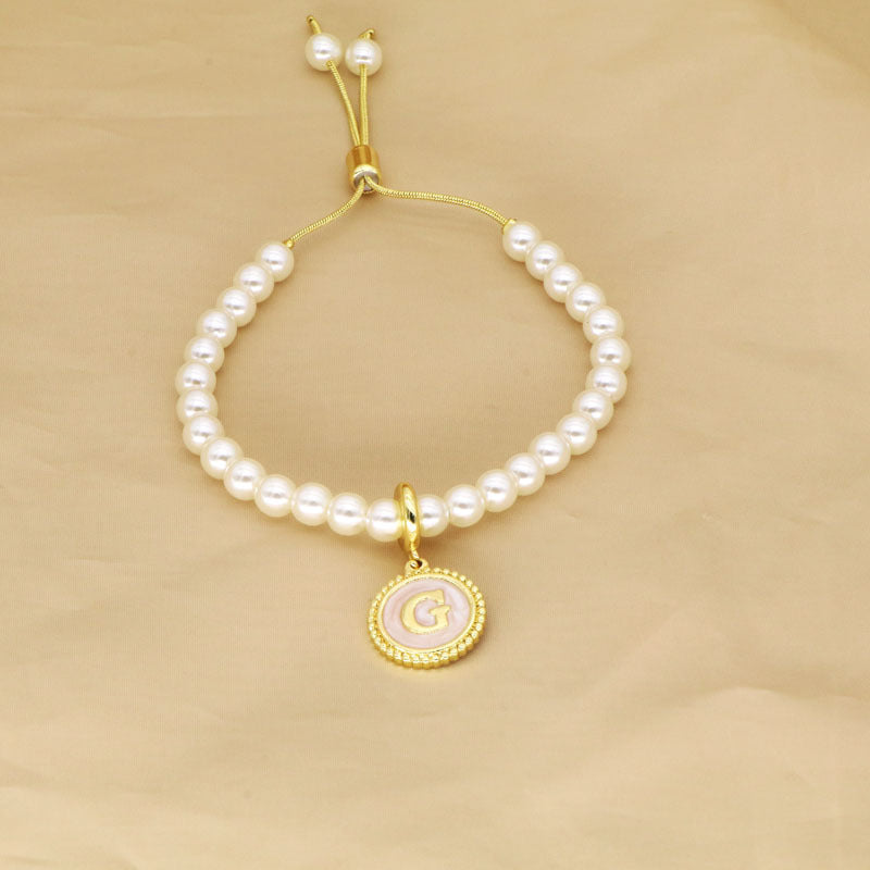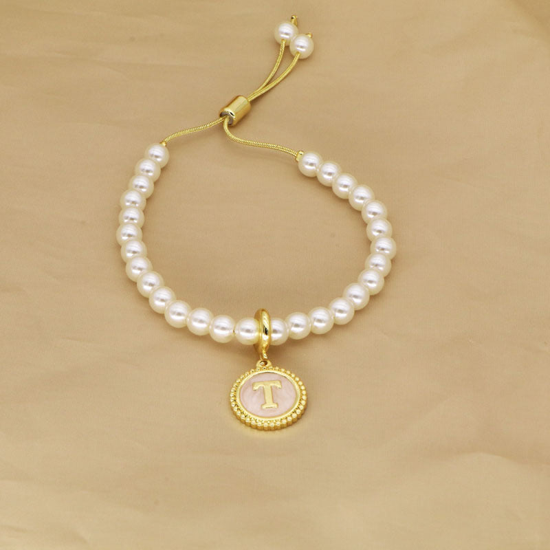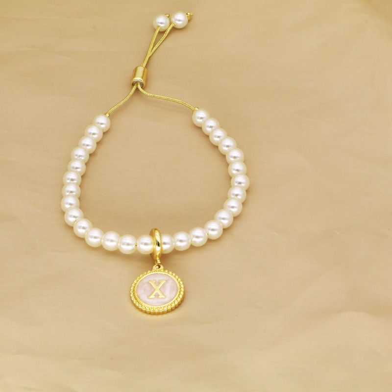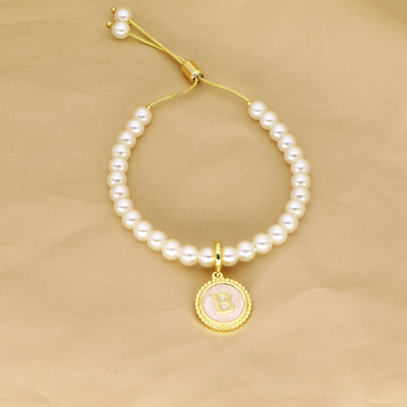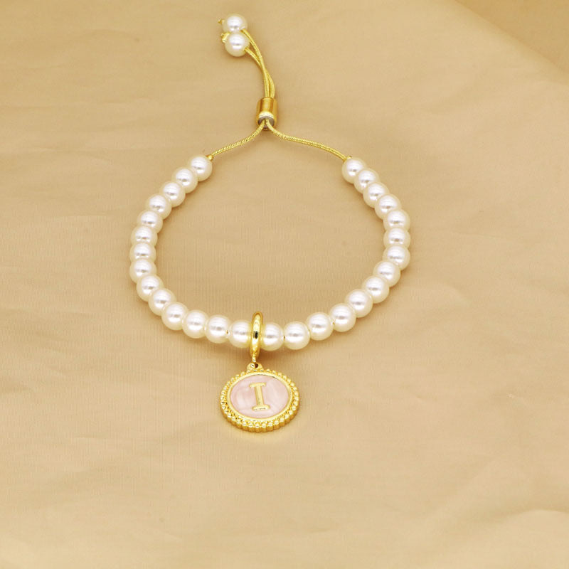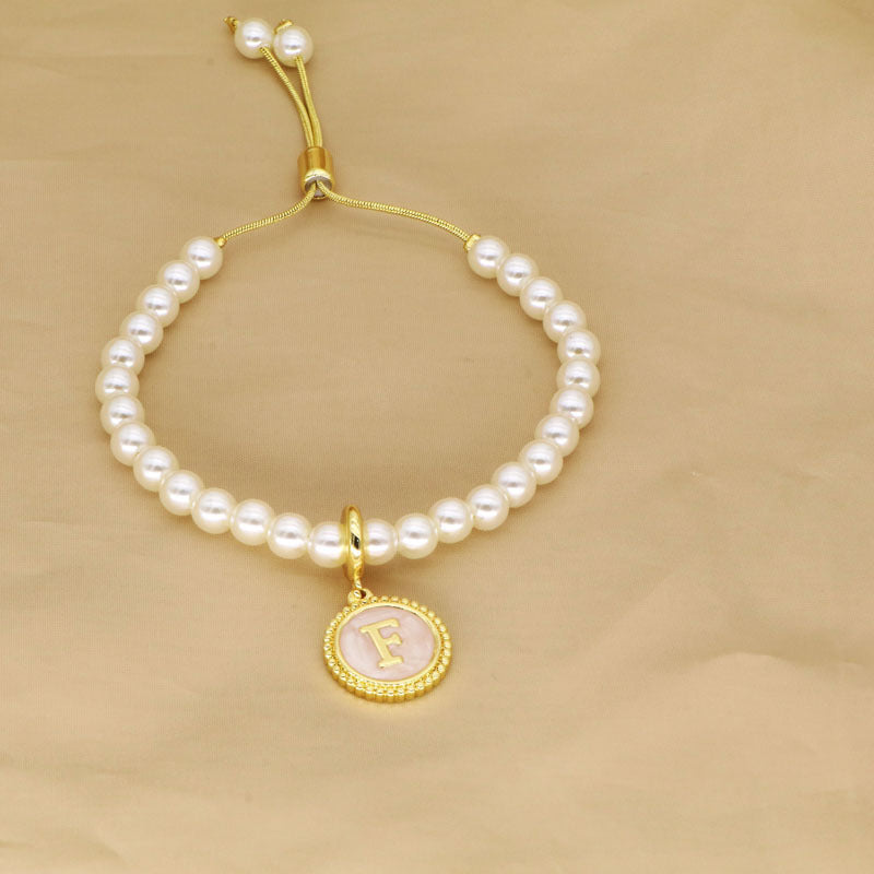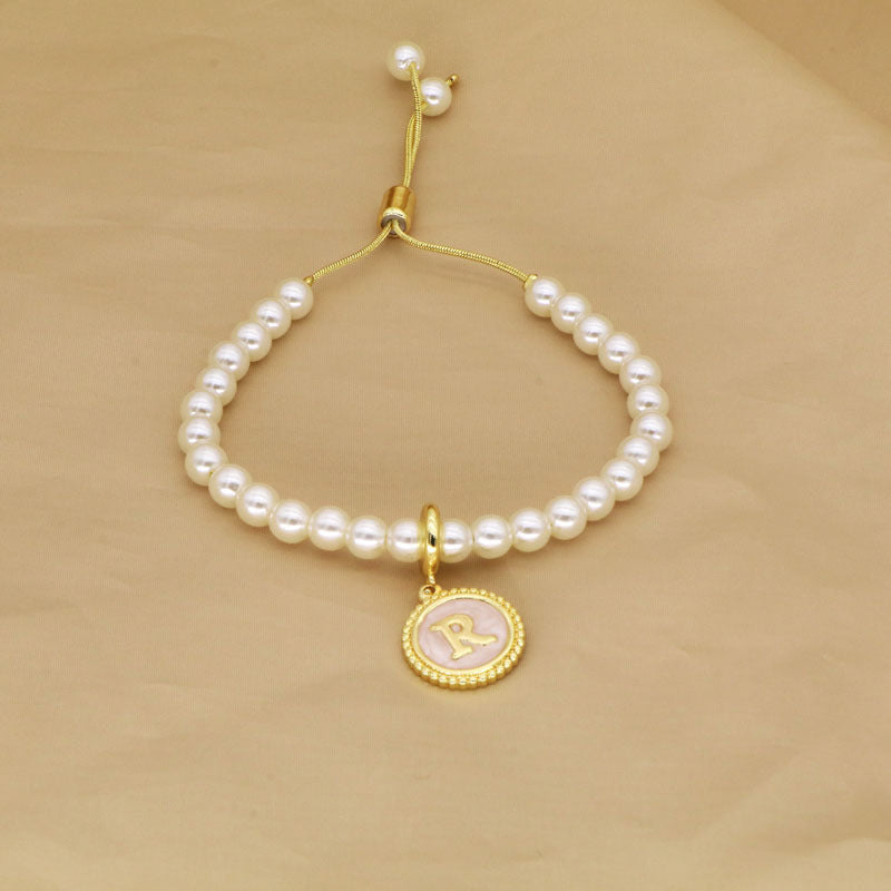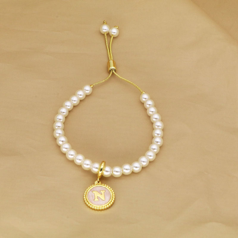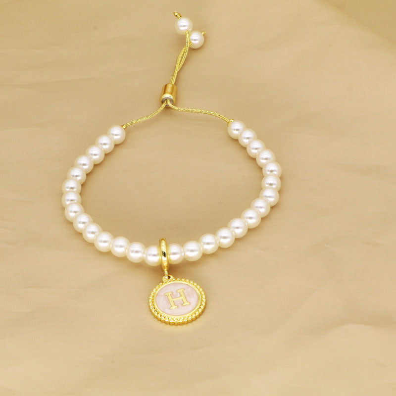 18K Gold Plated Adjustable Letter Pendant Imitation Pearl Bracelet