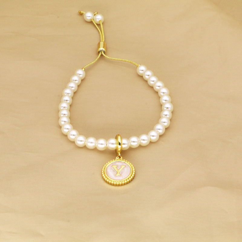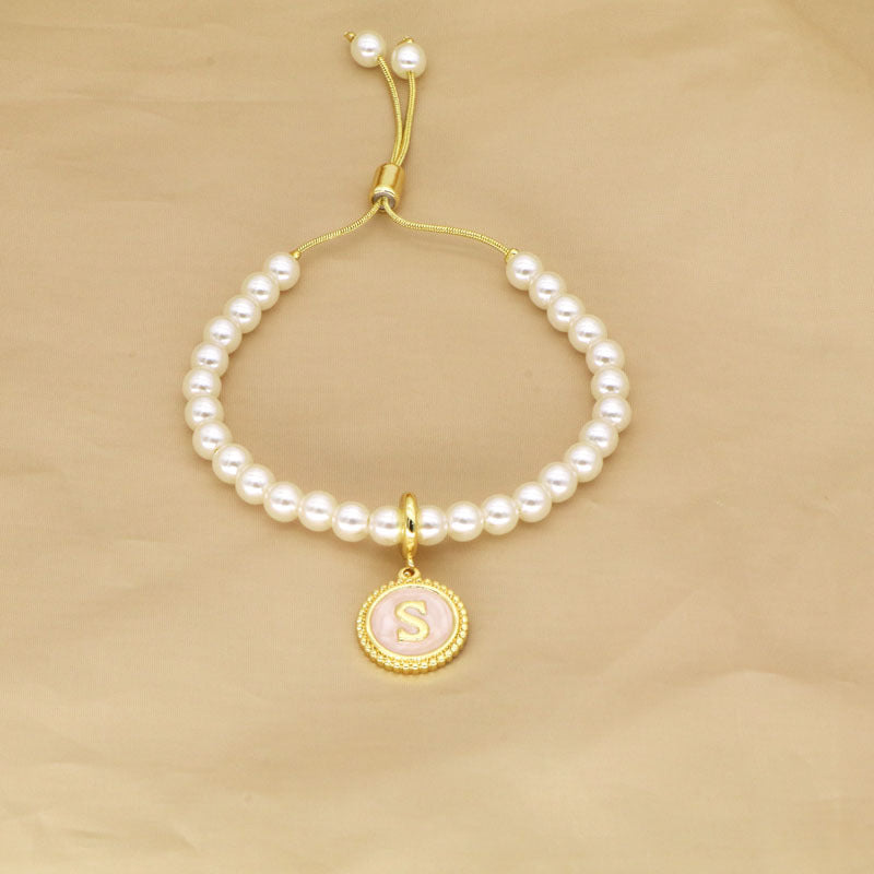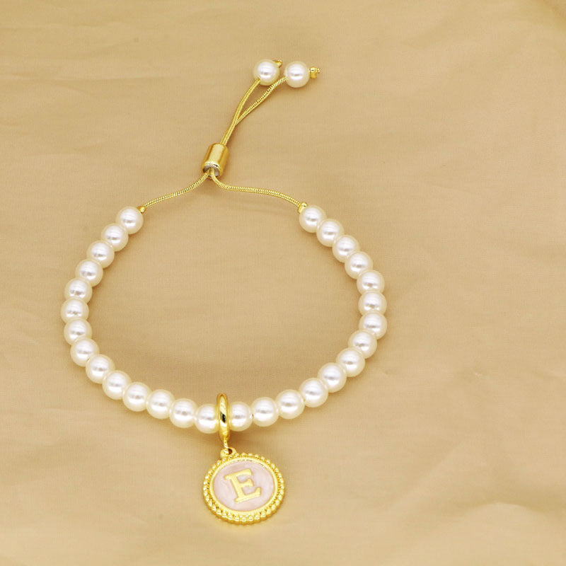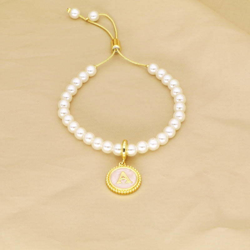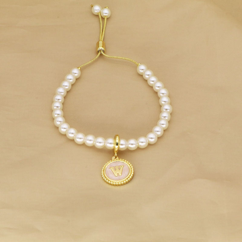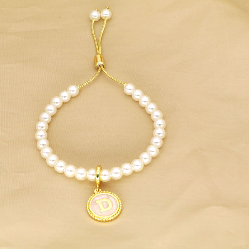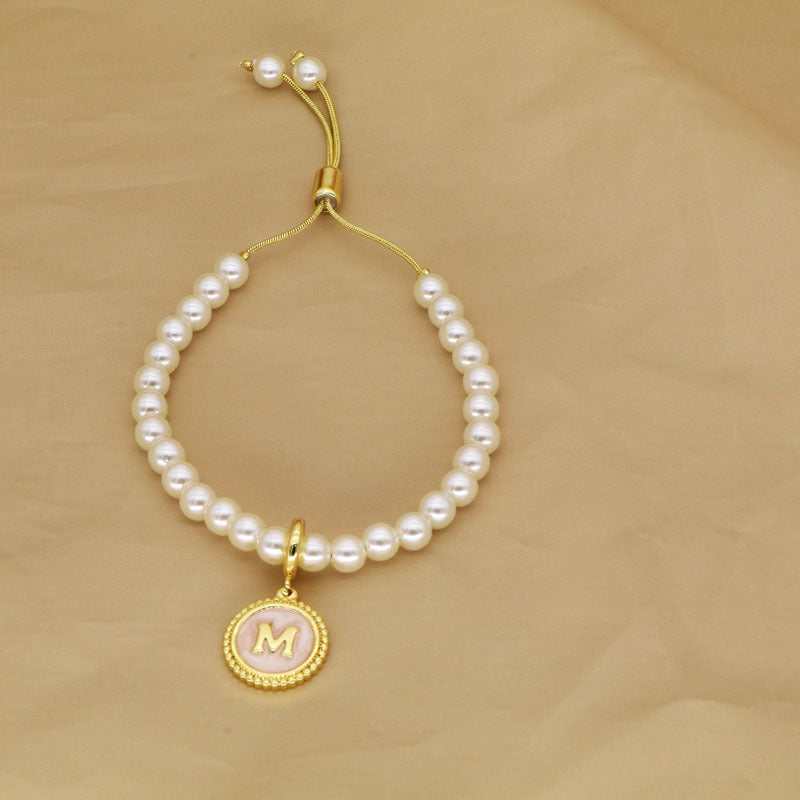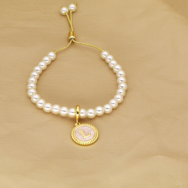 18K Gold Plated Adjustable Letter Pendant Imitation Pearl Bracelet