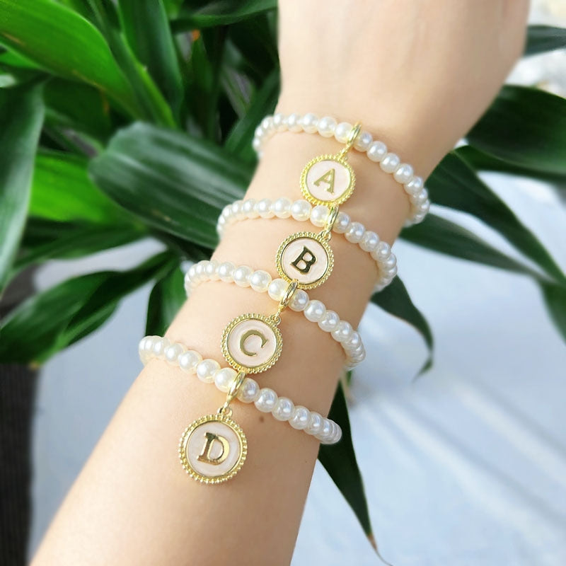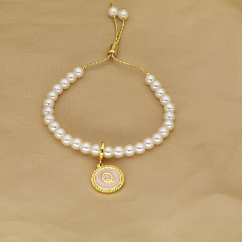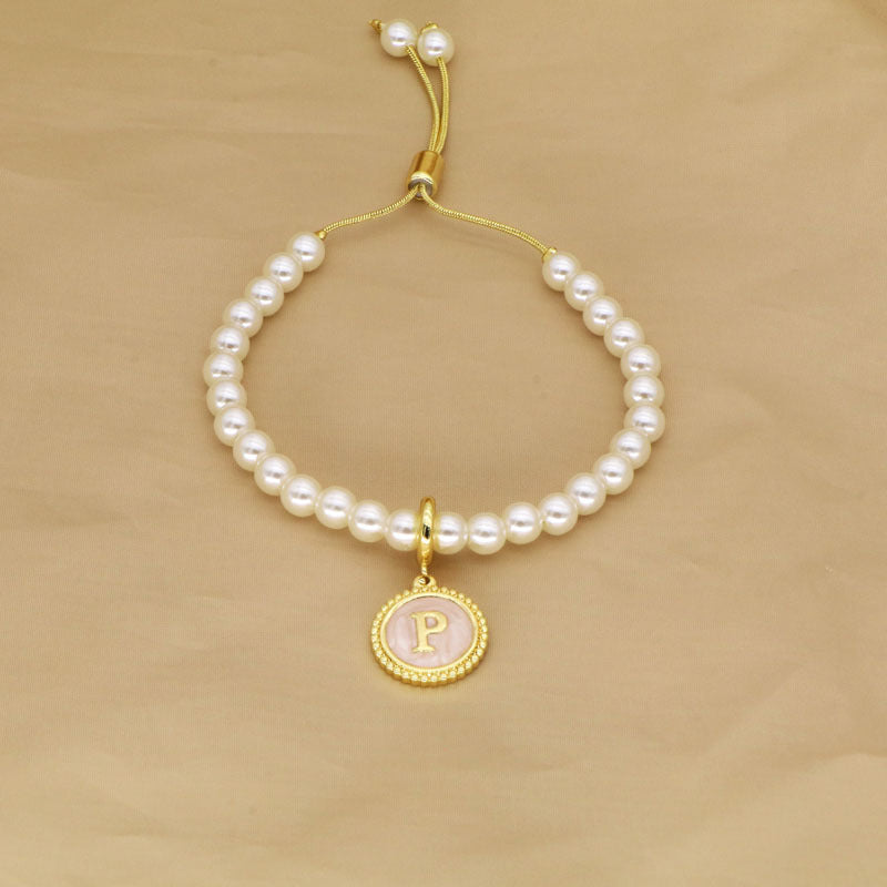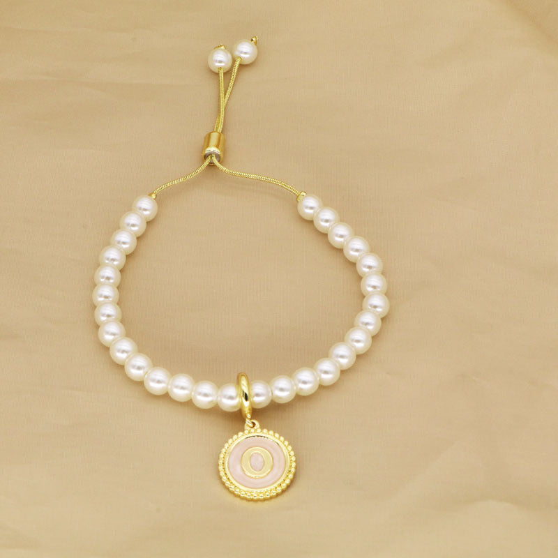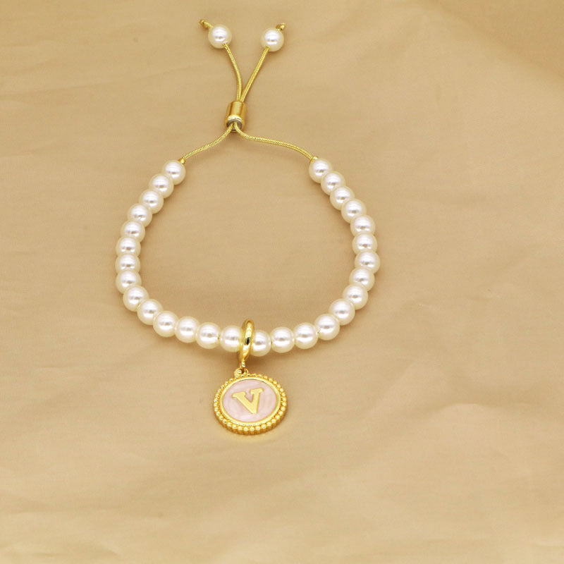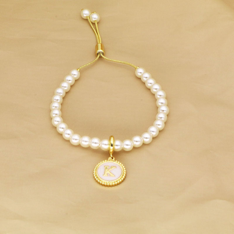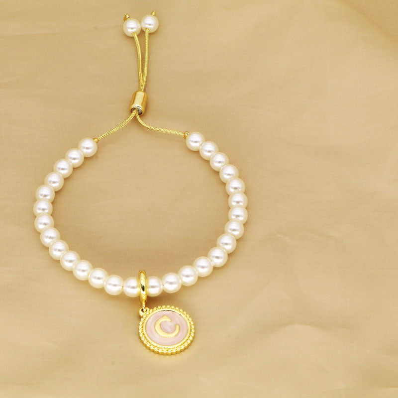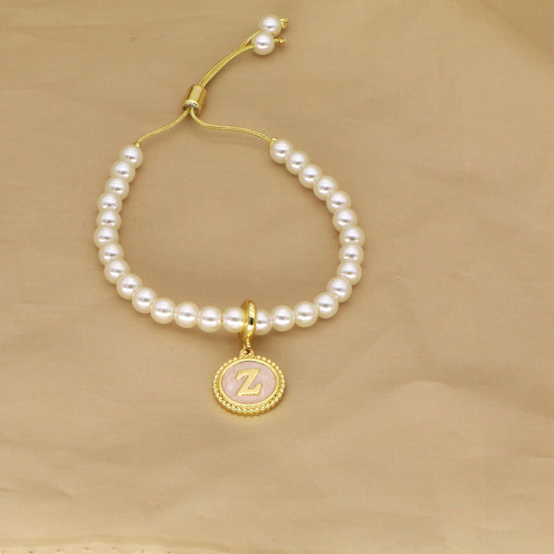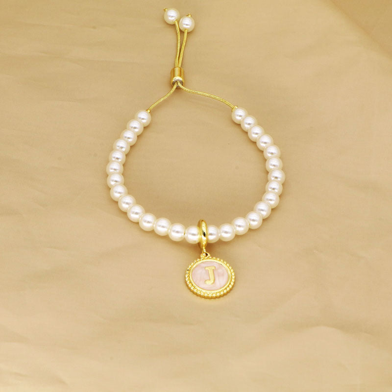 18K Gold Plated Adjustable Letter Pendant Imitation Pearl Bracelet