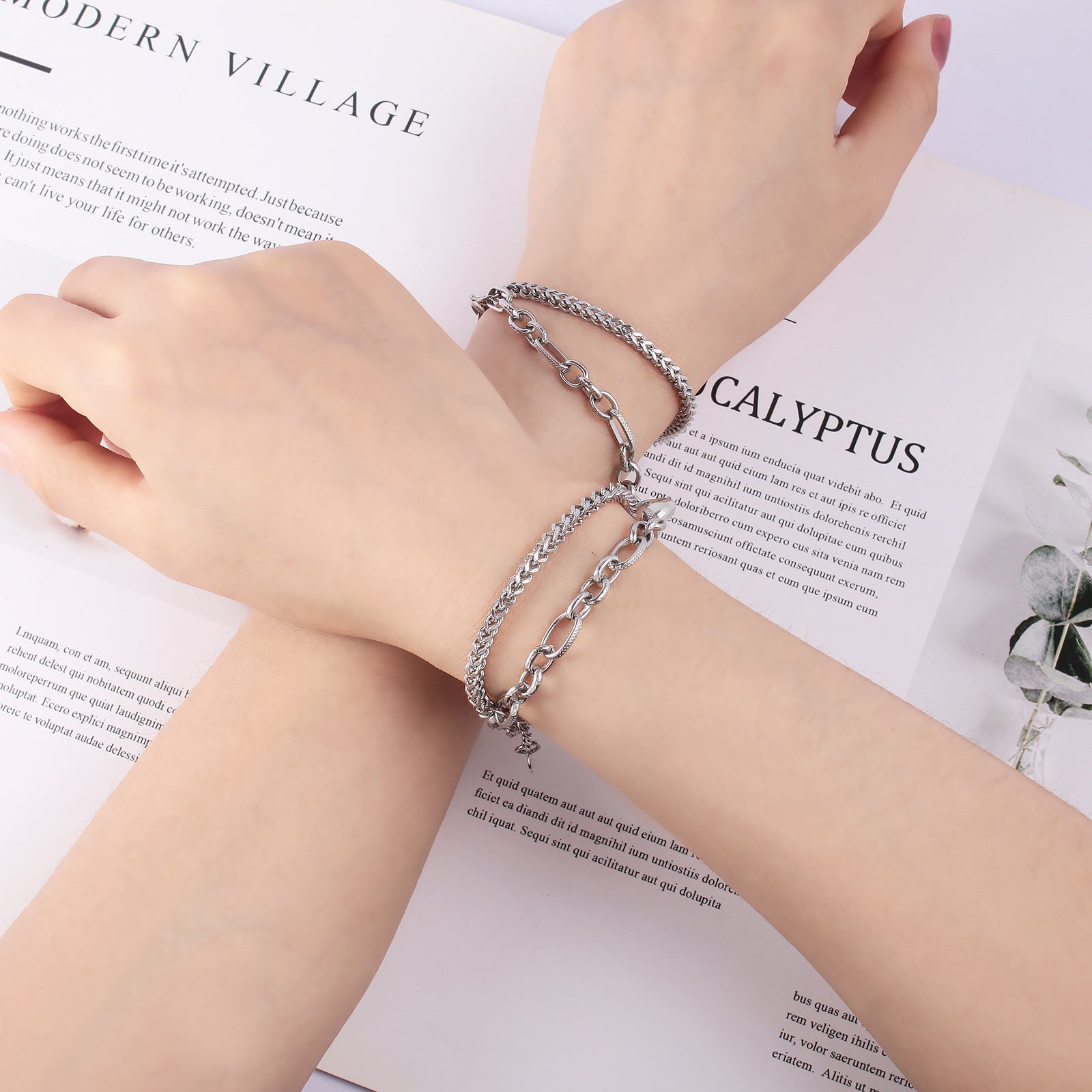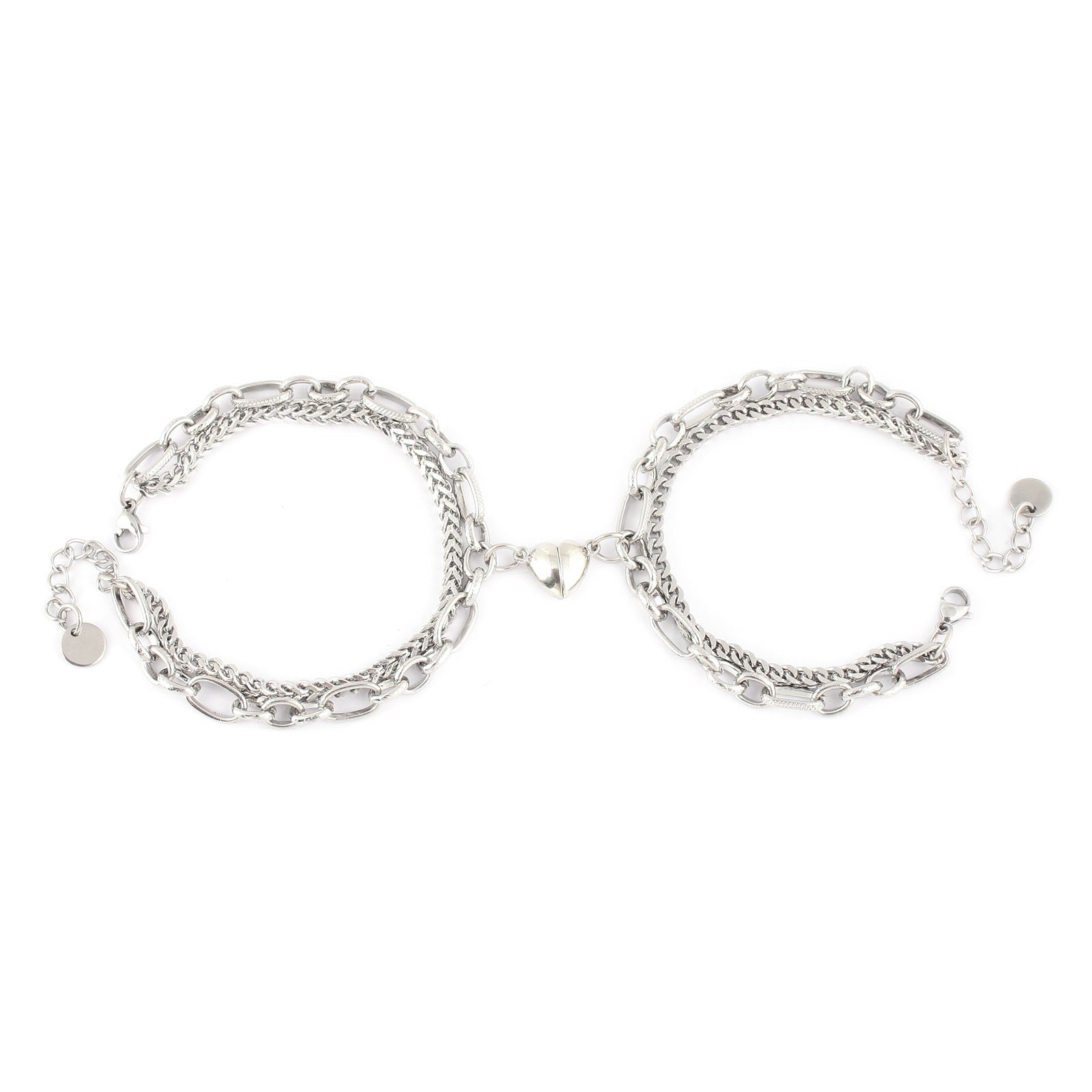 INS Style Heart Shape Double Layer Stainless Steel Magnetic Couple Bracelets