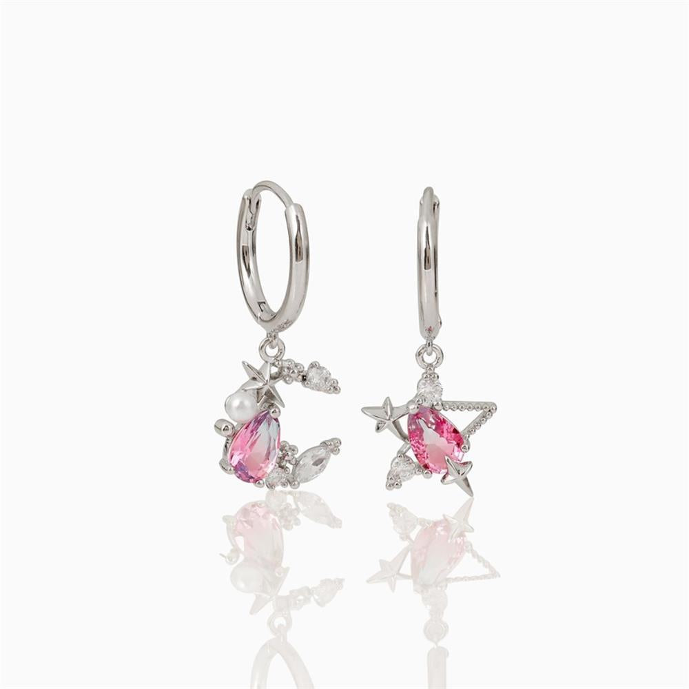 INS Style Asymmetric Star and Moon Zircon Earrings in 18K Gold Plated Copper