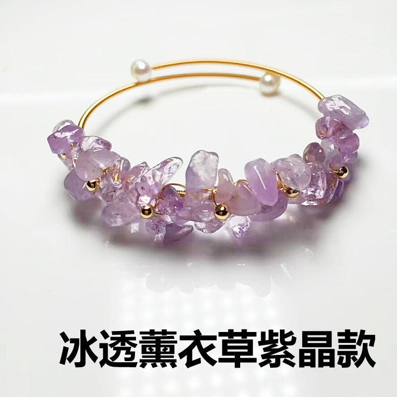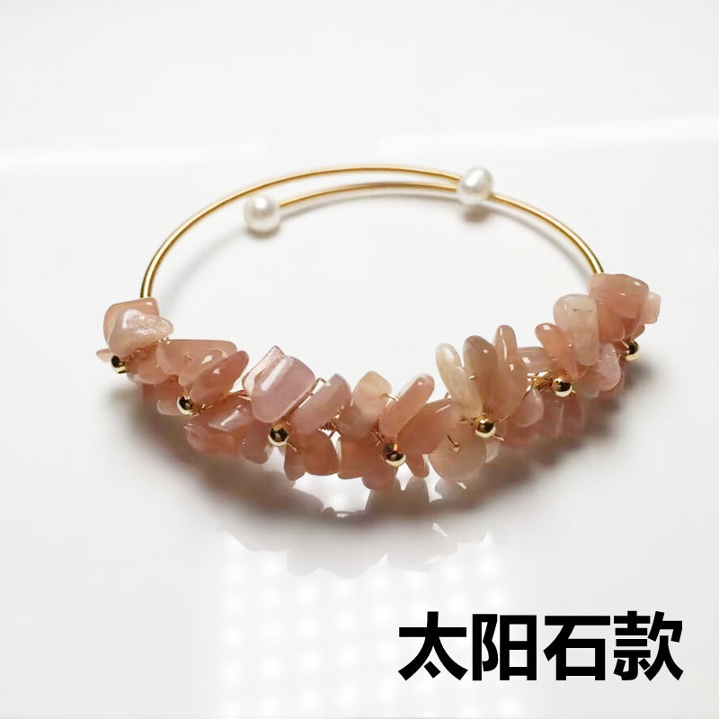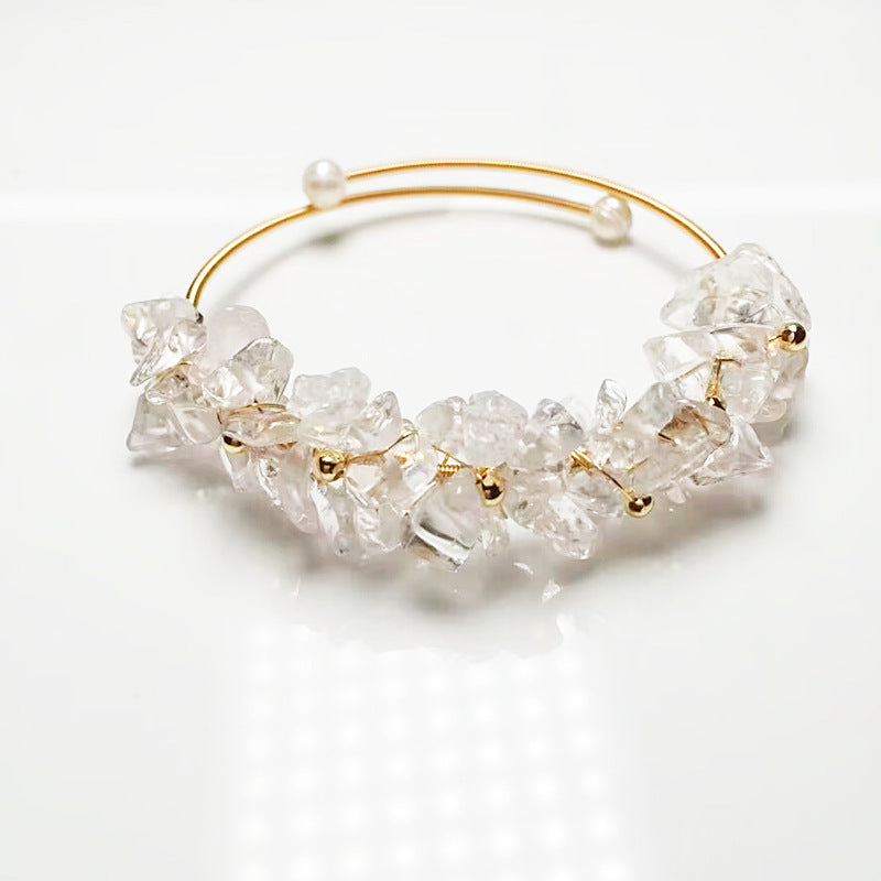 Ins Style Irregular Crystal and Gemstone Handmade Bangle with 14k Wire Wrap and Freshwater Pearl Finish
