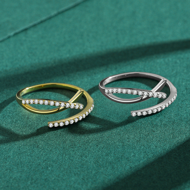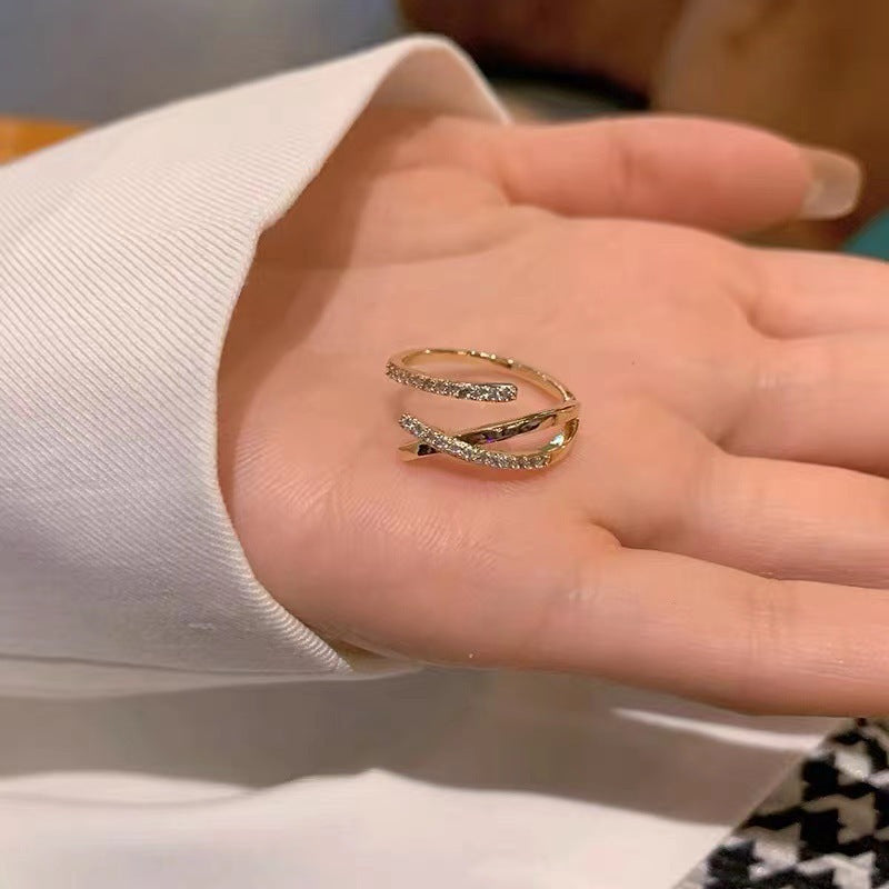 INS Style Sterling Silver Zircon Inlay 14K Gold Rhodium Plated Adjustable Open Ring