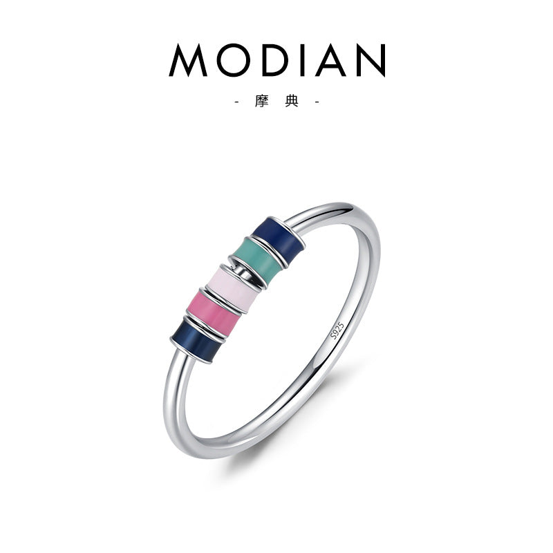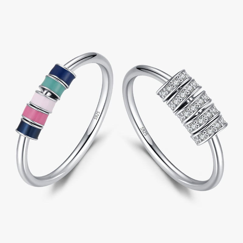 INS Style Rainbow Epoxy Inlay Zircon Sterling Silver Rings